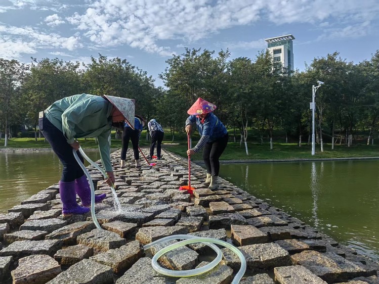 漳州校区物业部各班组员工化身“校园美容师”,接连加班加点近一个月,开展校园各处卫生保洁和绿化美化。