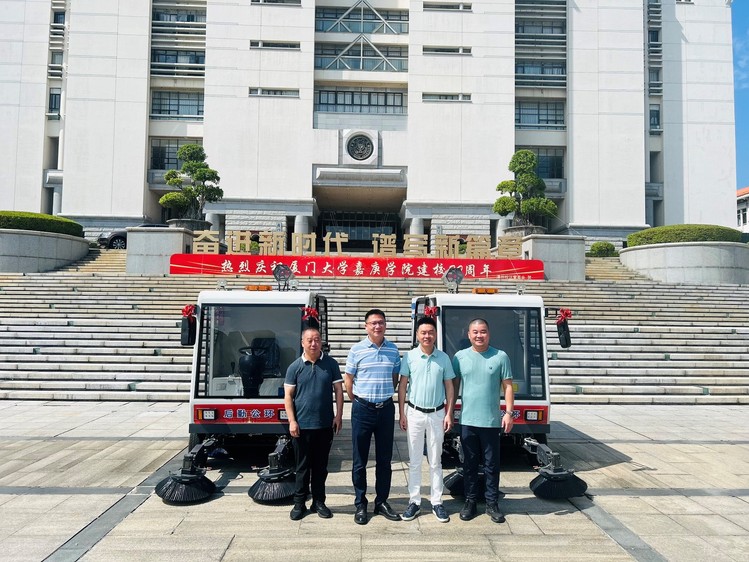 10月16日,集团副总经理李启忠、学生公寓与环境服务中心主任谢伟锋,到校区了解校庆后勤服务保障工作准备情况,并同嘉庚学院资产与后勤管理部部长廖智军共同观看了两部集团新添置的电动道路清扫车的运作情况。