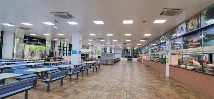 为做好本次校庆的供餐工作,创造良好的用餐环境,餐饮部北区餐厅上半年即对三楼包厢进行装改和完善,安装空调,更新配套餐具;中区餐厅完成一楼装修改造,备餐间及用餐区吊顶更新;南区餐厅增加三楼厨房设备,并进行前台线路改造。