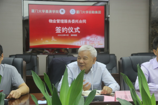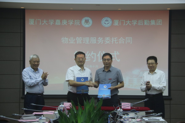 座谈交流后,雷锐生、杨旸分别代表嘉庚学院和后勤集团签署了物业管理服务委托合同。