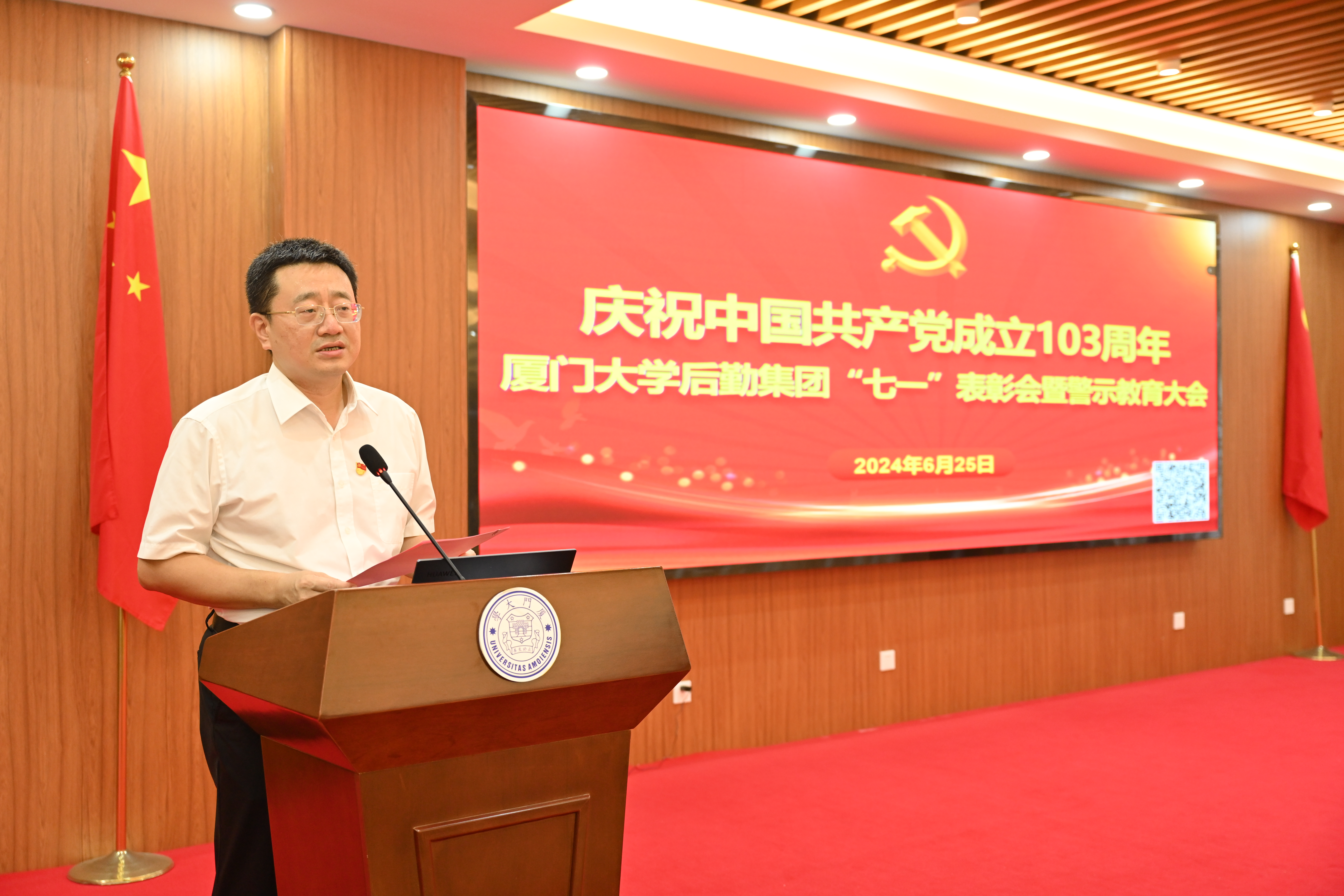 6月25日上午,后勤集团在东苑餐厅二楼召开庆祝中国共产党成立103周年“七一”表彰会暨警示教育大会。此次会议旨在表彰先进、弘扬正气,同时传达全面从严治党精神,增强党员的党性教育和纪律意识。会议由集团总经理杨旸主持,校基层党建工作联络员郑建华、集团领导班子、二级岗及以上管理骨干、全体党员及入党积极分子参会。翔安、漳州校区服务办分别设立分会场,以视频形式同步开展。
