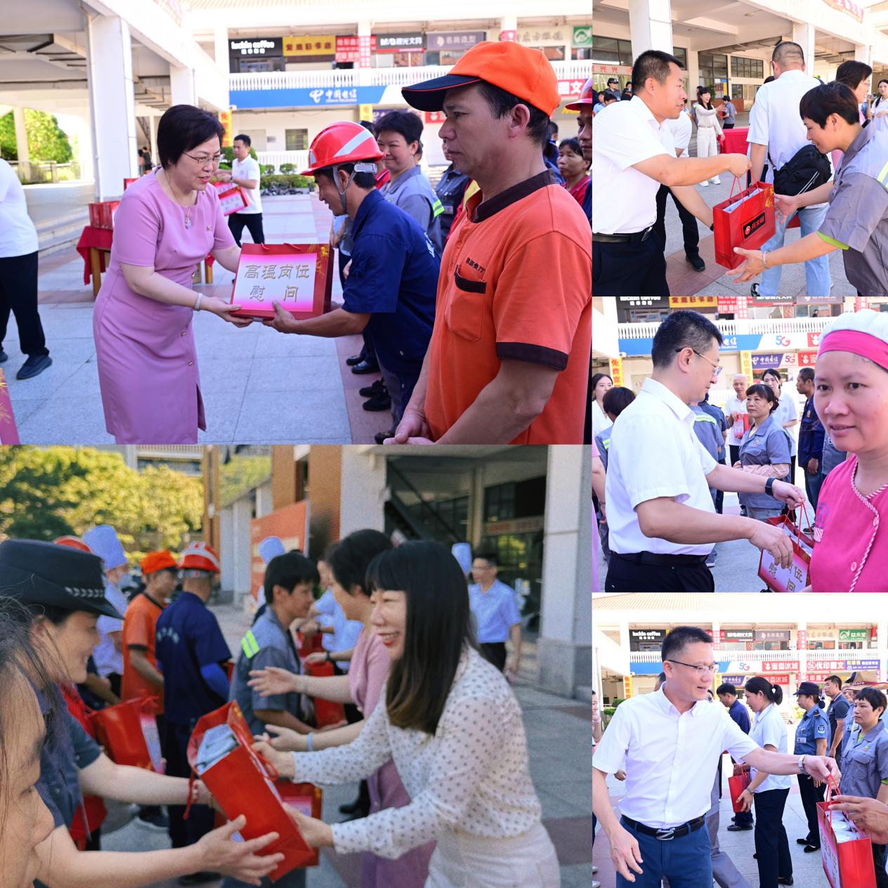 小暑轻启序章时,三伏未至暑已炽。在高温的“烤”验下,一线后勤员工汗透衣襟,不畏酷暑,以满腔热忱坚守岗位,诠释着责任担当。7月9日上午,厦门大学党委常委、副校长、工会主席邓朝晖前往翔安校区慰问高温下坚守岗位的后勤一线员工,厦门大学工会常务副主席洪秋霞,后勤集团党委书记、翔安校区管委会副主任马龙,集团总经理杨旸,校工会副主席余炳建,集团副总经理李启忠,总经理助理、翔安校区服务办主任汪尚谦,集团工会主席、办公室主任吴韶清一同亲切慰问了坚守高温岗位的一线员工,各部门负责人陪同。活动由马龙主持。