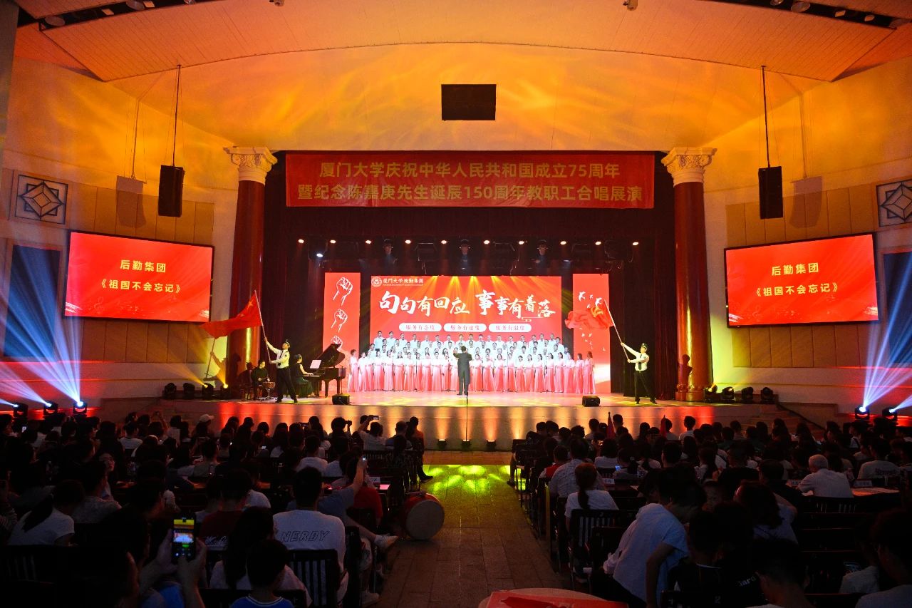 金秋时节,清风送爽,中华大地硕果累累;岁月悠悠,峥嵘不凡,神州大地繁花似锦。国有盛世荣光,家有山河锦绣,在中华人民共和国即将迎来75周年华诞之际,9月30日晚上,厦门大学庆祝中华人民共和国成立75周年暨纪念陈嘉庚诞辰150周年合唱展演在建南大会堂圆满落下帷幕。此次合唱展演中,后勤集团荣获“最佳演唱奖”与“最佳组织奖”,后勤人以昂扬之姿、奋斗之势,奏响关于热爱与奉献的乐章,后勤之声将《祖国不会忘记》融进后勤血脉中,唱响爱国之情、报国之志。