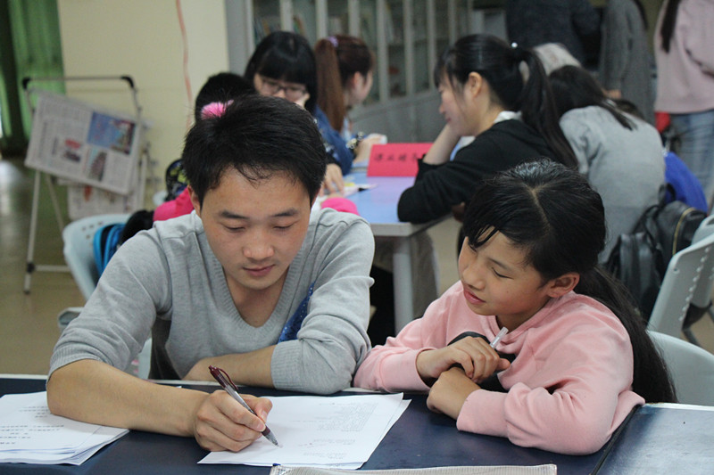 之后,志愿者和小朋友们开始了一对一的教学和互动。教学和互动分四个组进行,有国学研习组、爱好入门组、课业辅导组、阅读写作组。小朋友们根据自己的需求和兴趣选择自己的分组,志愿者们也在每个组中发挥了自己之所长。