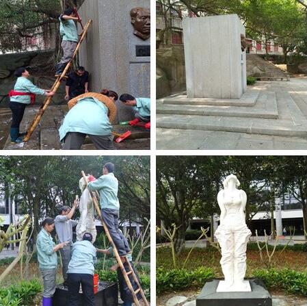 雕像清洁前后对照