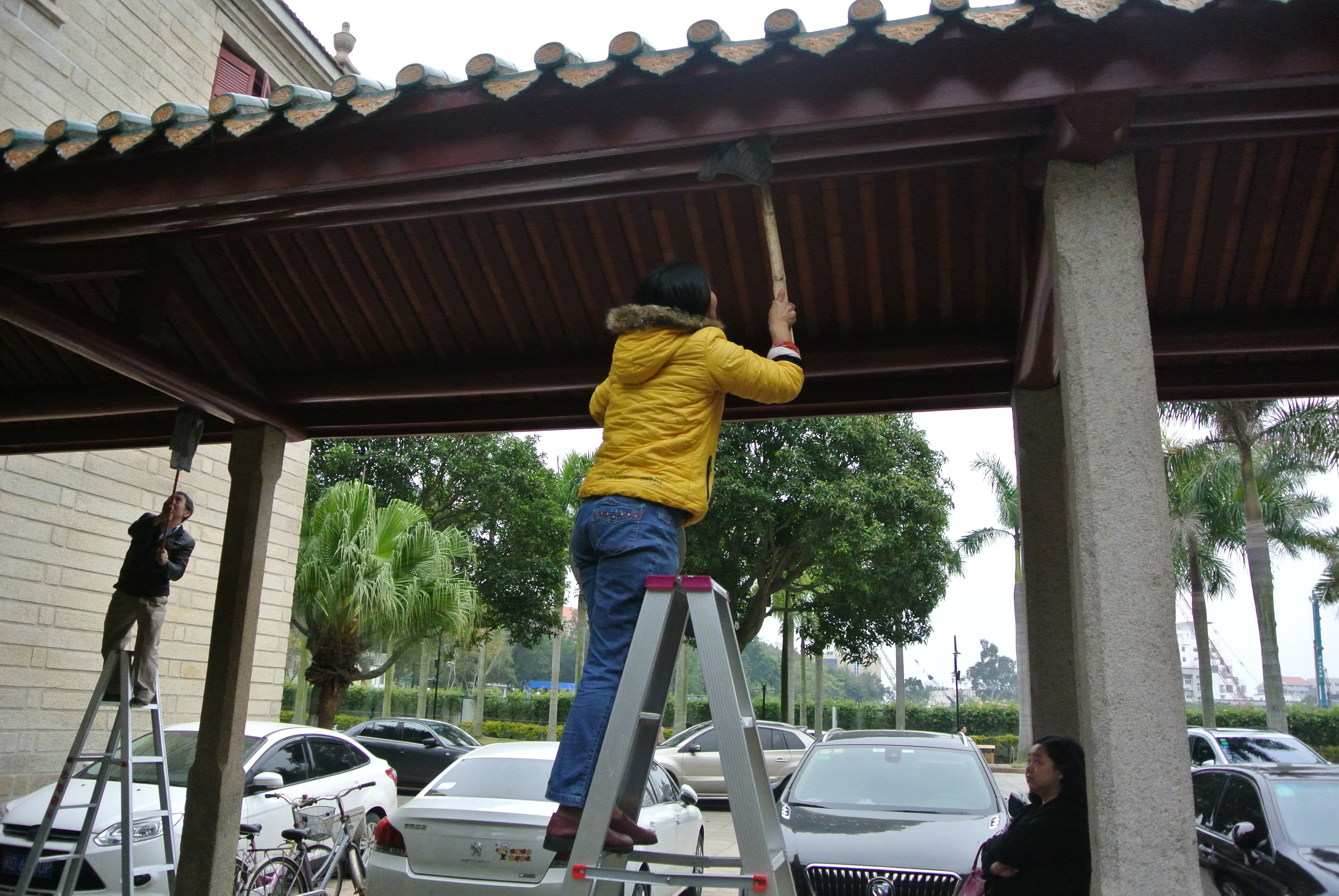 群贤楼连廊的屋顶被擦洗得一尘不染。