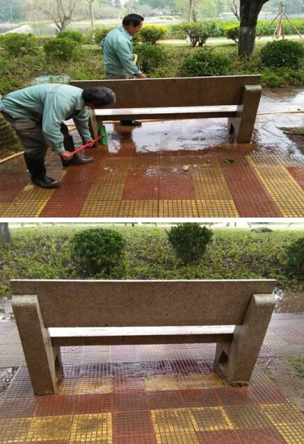 石凳擦洗前后对照