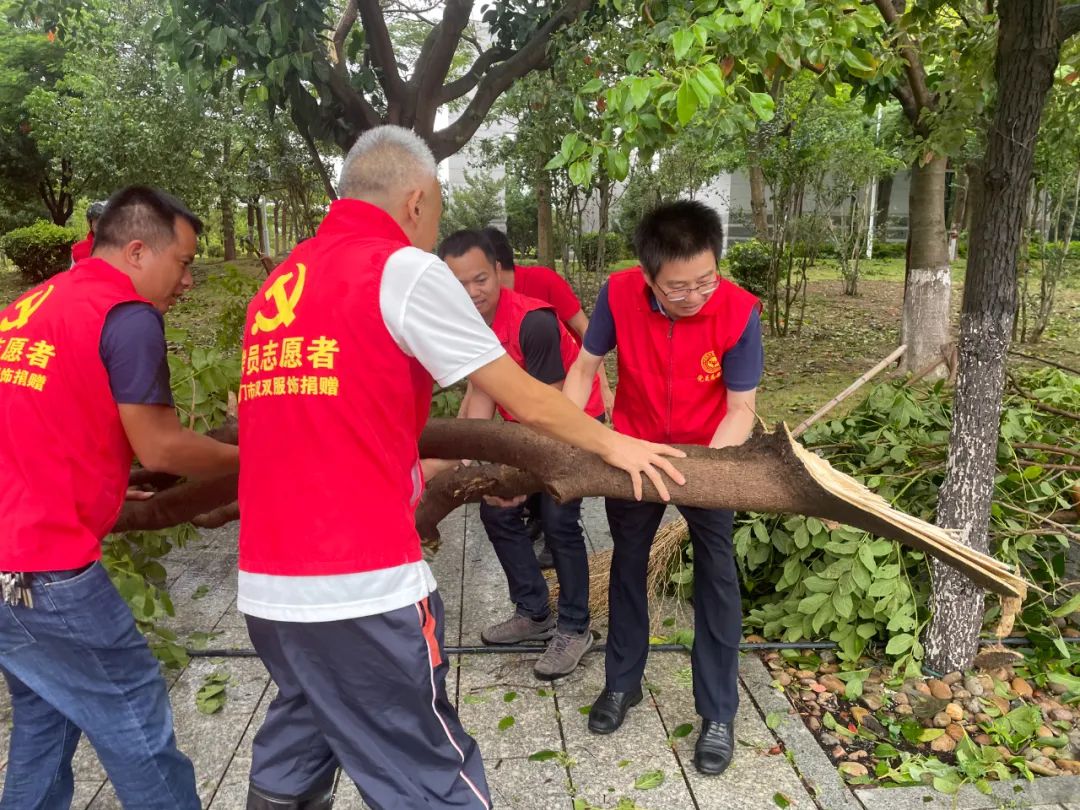 7月28日下午台风过后,集团领导班子成员带领三校区党员骨干职工,全力投入灾后恢复抢救战,集中力量清理倒伏、折断的树木,迅速抢修损坏路灯、门窗等设施设备,以最快速度“一键还原”学校教学、学习、生活秩序。