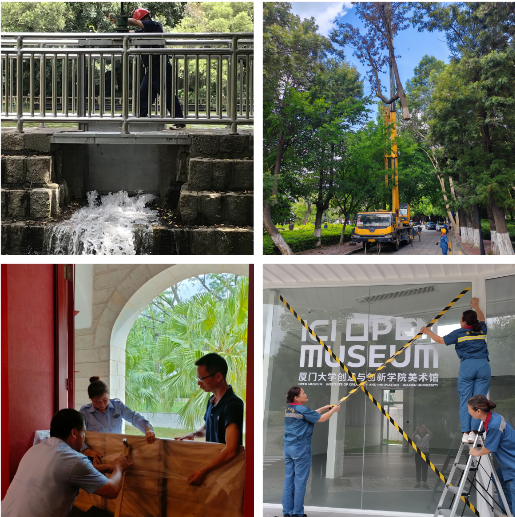 7月28日上午9:55第5号台风“杜苏芮”在晋江登陆,厦门大学三个校区不同程度受损,后勤集团领导班子带领全体员工,齐心协力,全力以赴,第一时间投入灾后恢复抢救战,筑牢校园安全屏障,守护师生安全,展现了靠谱的后勤风采和过硬的后勤队伍,赢得校领导和师生的高度评价。