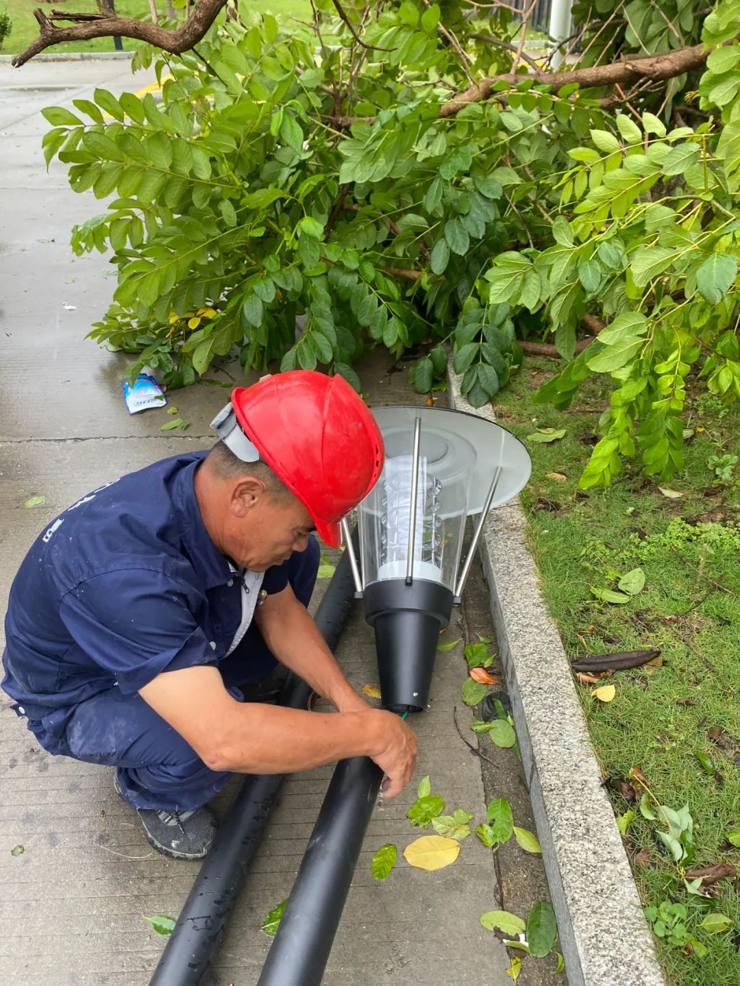 水电服务中心迅速组织三校区员工对校区内路灯等损坏水电设施设备进行抢修恢复,确保水电畅通。
