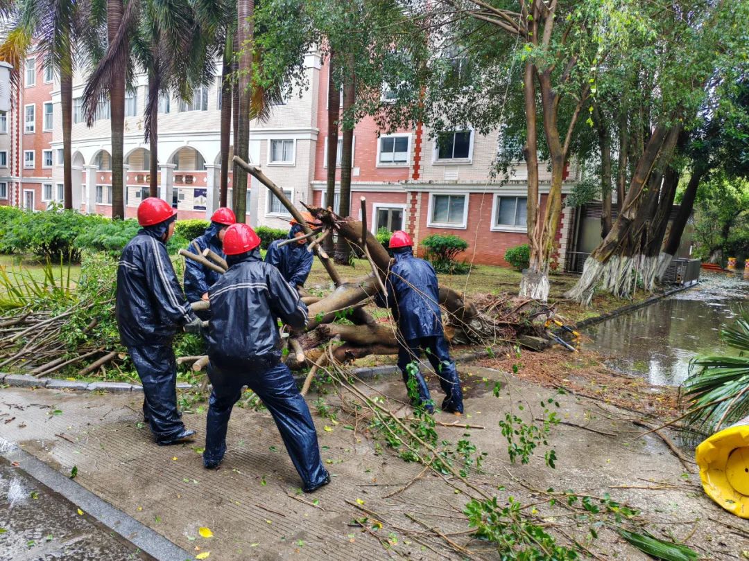 连日来,为了确保校园师生安全,集团成立以集团党委书记杨云良、总经理杨旸为组长的指挥领导小组,翔安、漳州校区成立工作领导小组;三校区组建道路清障队、水电抢修队、供餐保障队、集团本部应急支援队等12支应急抢险分队;党员骨干纷纷主动请缨坚守岗位,24小时值班值守,有的连续五六天吃住学校。台风登陆前一天,集团领导班子分工,党委书记杨云良、总经理杨旸、副总经理王裕民分别坐镇翔安、思明、漳州三个校区指挥防御台风。