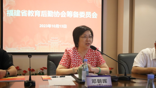 邓朝晖在致辞中对前来参会的兄弟高校后勤同仁表示欢迎和感谢,她指出在当前的社会背景下,希望成立福建省教育后勤协会,能更好地反映学校意志、维护学校利益,有利于提升教育后勤服务水平和服务保障能力。后勤事业是学校重要的组成部分,她希望各位同志通过此次契机,理顺相关机制,发挥行业优势,把握机遇、应对挑战,更好地为福建省教育事业的发展、为教育强国的建设做出高校后勤人的贡献。