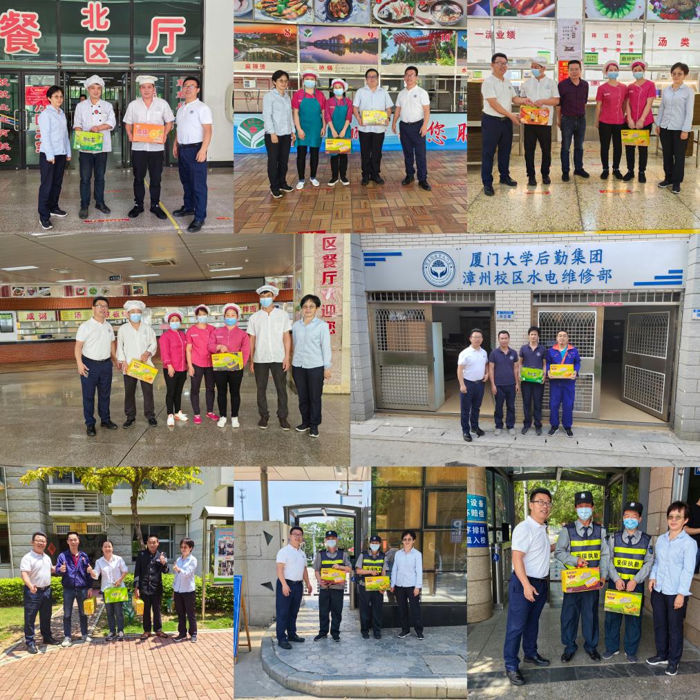与此同时,集团总经理助理汪尚谦、张建波分别慰问了翔安校区和漳州校区的在岗后勤职工。