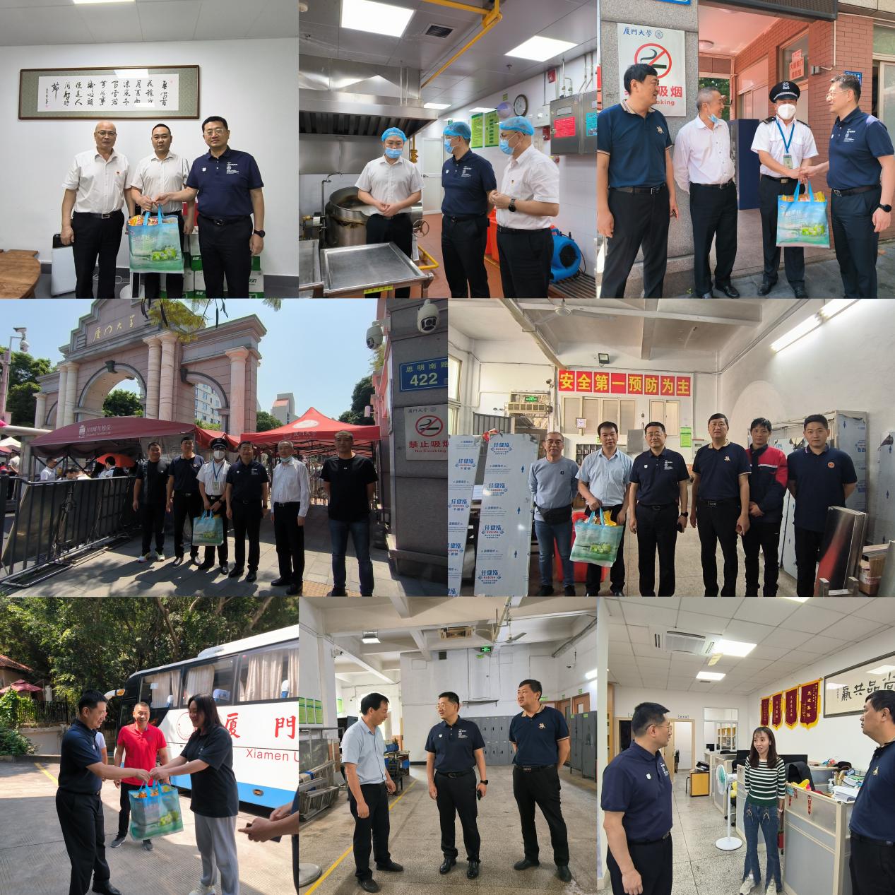 在思明校区,集团党委书记杨云良、总经理杨旸,副总经理王裕民、沈雄晖分别走访慰问了校门、勤业餐厅、综合服务楼、运输中心、校外弘爱医院餐厅等在岗职工。