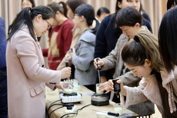此次主题活动分为四个环节:一是闻香舒压、二是制作天然精油唇膏、三是情绪管理放松、四是调制专属情绪精油。主题沙龙活动贴近女性、贴近生活,加强了女职工之间的交流互动,在互动中感受如何释放情绪、缓解压力,学会爱自己,现场欢声笑语,气氛活跃。