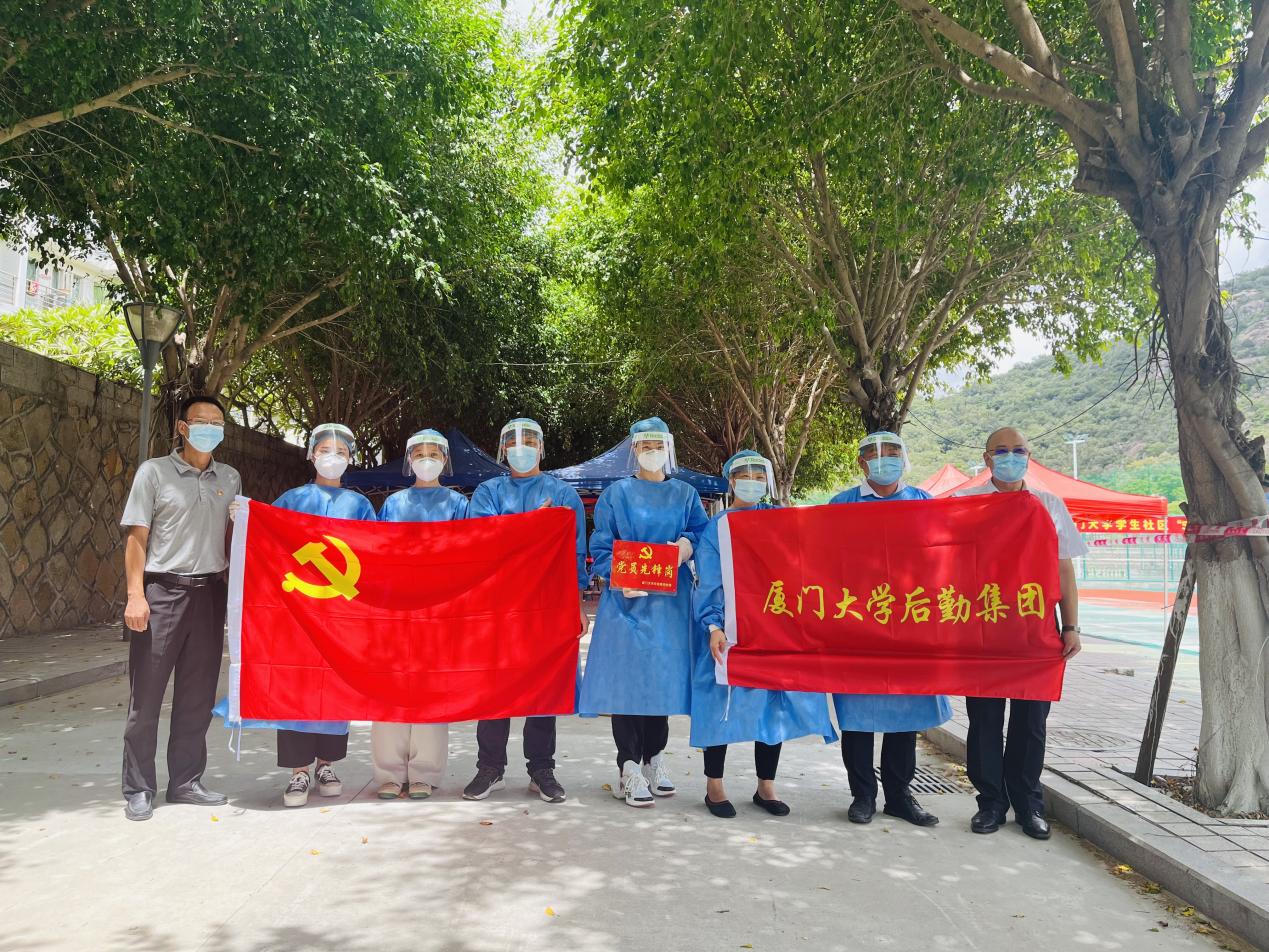 8月19日,集团共组织13名党员志愿者参与了思明校区核酸检测点的信息录入和秩序维护工作。为加快检测进度,减少师生排队等候的时间,志愿者们早晨6:00就到位,进行上岗前的专业培训,包括如何正确穿戴防护服、检测信息录入步骤和特殊操作事项等。7点开始,大家各司其职、高效有序开展检测工作,虽然天气炎热、工作反复枯燥,但是大家毫无怨言,在10:30-14:30这一阶段,有的志愿者甚至放弃吃午饭,毅然坚守岗位,不间断地进行检测工作。在现场医护人员和志愿者们的共同努力下,核酸检测工作顺畅有序完成。