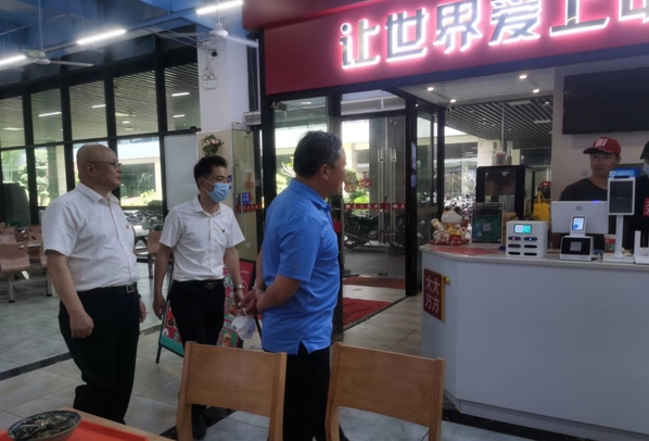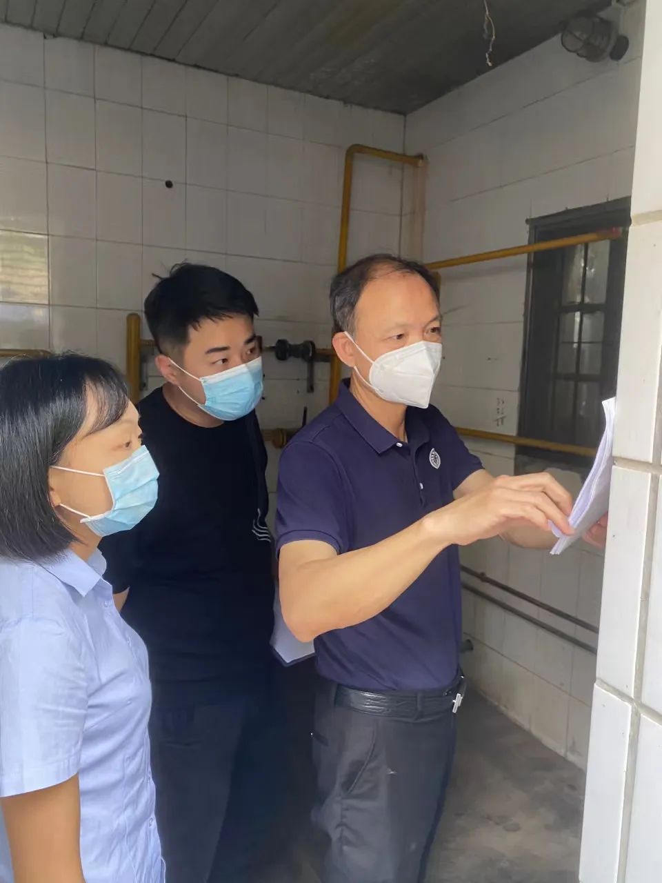 检查组一行实地查看了校门、学生宿舍、运输车库、印刷车间、餐厅后厨、快递鸟箱、液化气组间等重点部位,重点检查了工作台账、消杀记录、消防设备、食品卫生、电动车充电等,发现问题,责令整改。