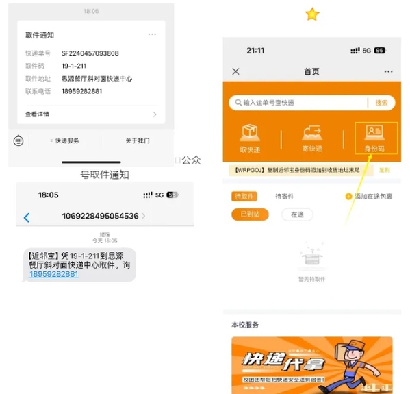 2.绑定成功后返回首页,点击取件即可查询到自己的取件码。