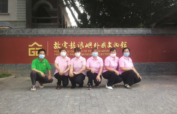 各项目抽调的岗位能手组成开荒团队则分别奋战在绿化和保洁岗位上:穿戴绿衣黑裤的绿化“男战士”拎着修剪机,顶着户外的高温,将灌木修剪的整齐美观,背起喷雾器,做好防护,为花草树木喷洒药物;身着粉衣黑裤的保洁“女战士”也不遑多让,挥舞着抹布、水枪,与杂物和污渍鏖战不休,细心地为这座百年近现代建筑洗去蒙尘恢复本真,小心擦洗展柜污垢让文物得到更好的展示和保护。
