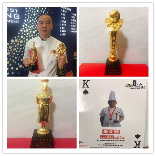荣获“2018改革开放40周年中国餐饮十大风云人物”、“十大金牌总厨”奖杯