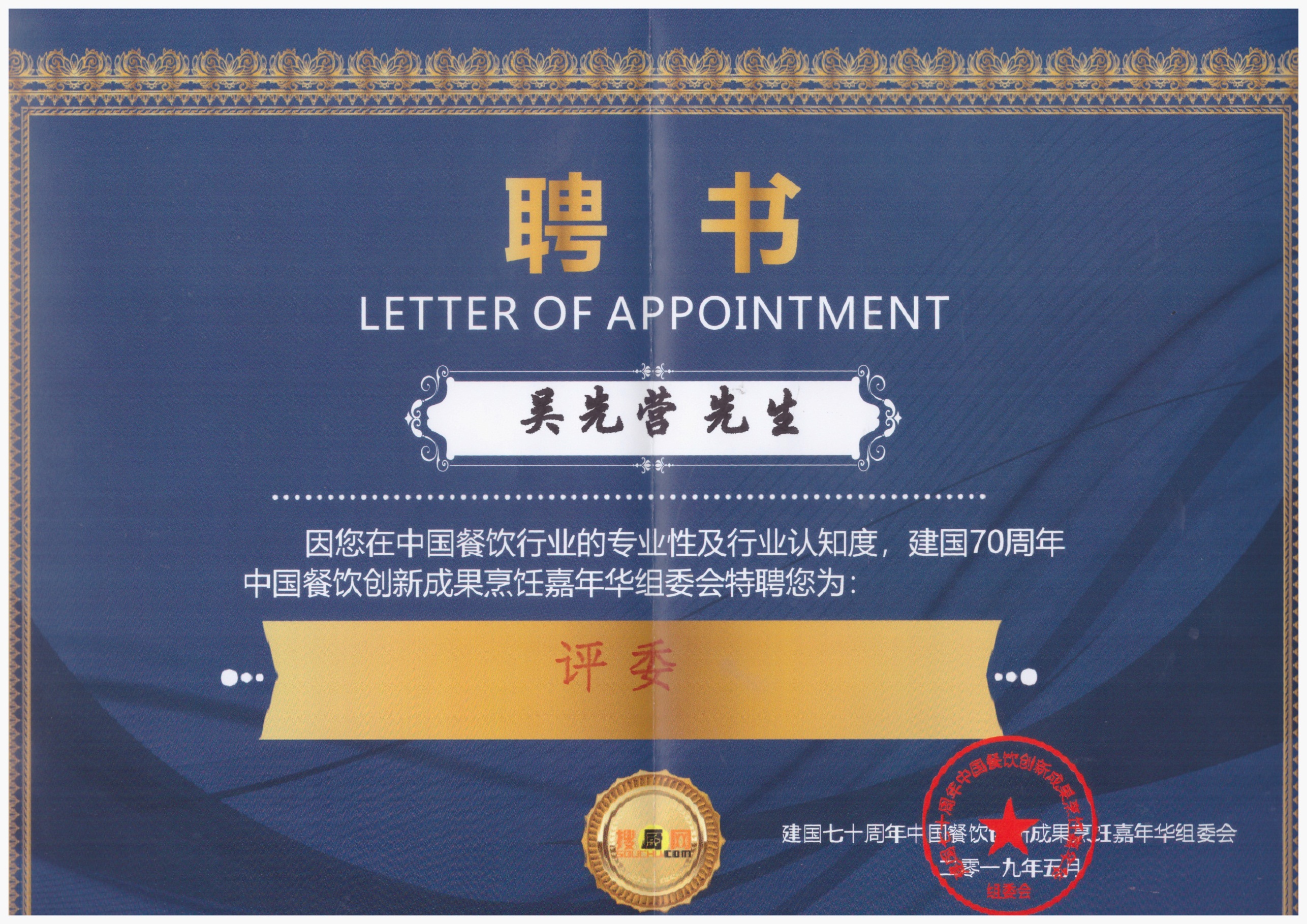 5月22日,中华人民共和国成立七十周年中国餐饮创新成果烹饪大赛在北京国家会议中心举办。此前,中国餐饮年度人物评选组委会对2018年中国餐饮年度人物进行了评选,厦门南强后勤服务有限公司驻厦门国家会计学院厦大餐厅的行政总厨、福建闽菜大师吴先营同志从全国众多厨师中脱颖而出,荣获组委会颁发的“2018改革开放40周年中国餐饮十大风云人物”、“十大金牌总厨”的荣誉称号,并名列50强杰出人物,位列中国餐饮名人堂第七名。此次大赛,应组办方邀请,吴先营还担任了大赛的评委,并进行了行政总厨表演赛。