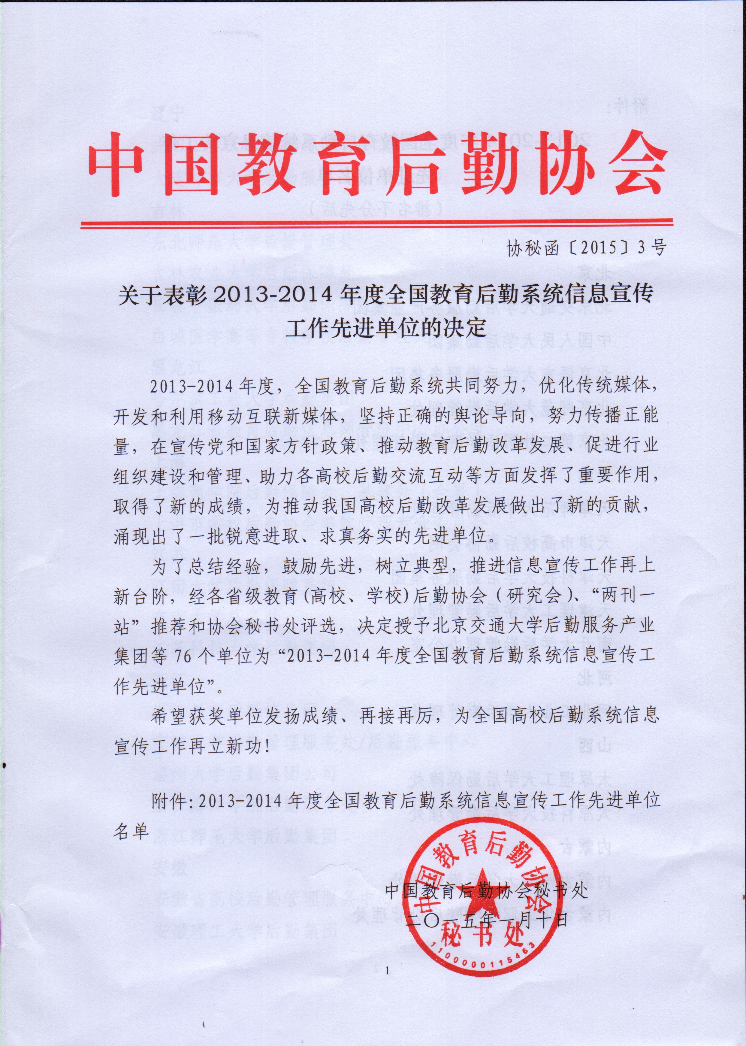 喜 讯 集团喜获2013-2014年度全国教育后勤系统信息宣传工作先进单位表彰。