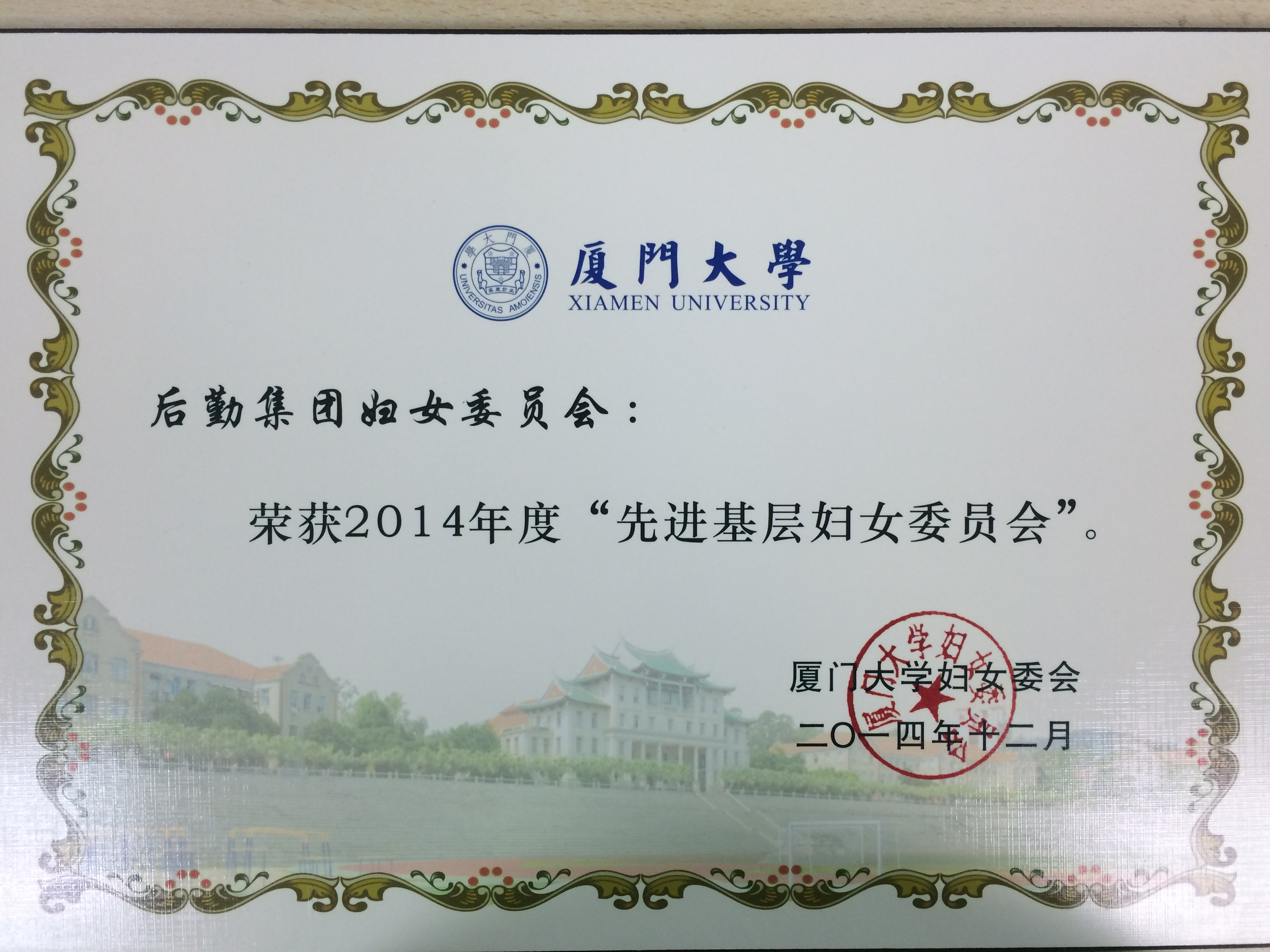 喜 讯 集团妇委会荣获2014年度厦门大学先进基层妇女委员会荣誉称号。