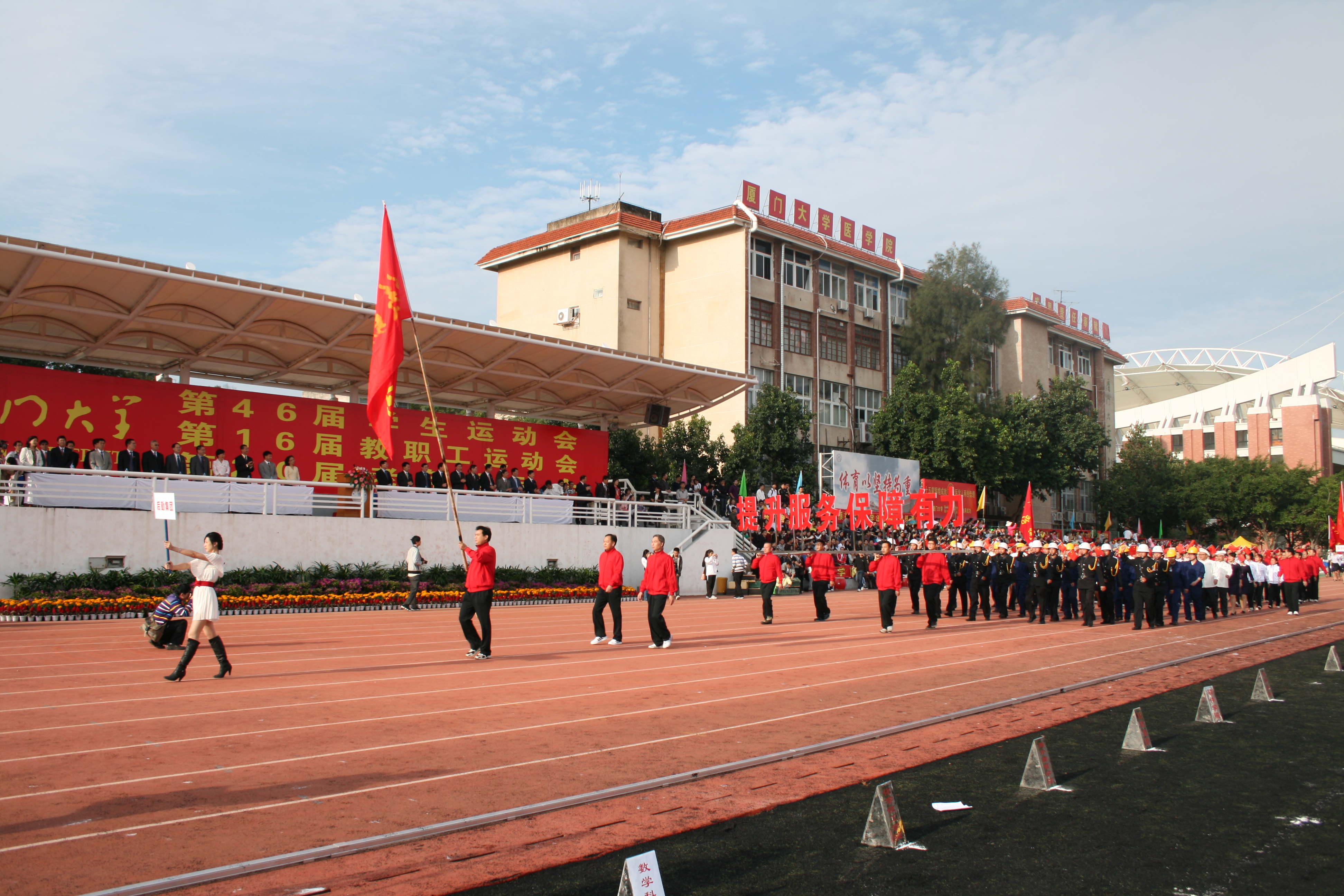 龙腾虎跃 再创佳绩 ——记后勤集团在校第16届教职工运动会中取得佳绩 在11月11日至12日举行的校第16届教职工运动会上,集团代表队上下一心,奋勇拼搏,以总分262分的成绩荣获本届教职工运动会第二名。 开幕式上,由集团领导、保安队列、厨师队列、接待中心队列、水电维修部队列、运动员、各单位负责人等组成的集团方阵既层次多样、富有特色,又整齐划一,展现了集团职工的风采;方阵中的标语牌上“提升服务”体现了后勤人对服务质量水平的不懈追求,“保障有力”表达了后勤人为学校提供扎实有效后勤服务保障的坚定决心;嘹亮的口号“增强服务、提高质量、勇创品牌、共谋发展”,明确了集团不断提升的奋斗目标和方向;一群群飞向天空的和平鸽寄托着后勤人对学校、对集团、对本届运动会的美好祝福。 运动赛场上,集团领导亲临现场,集团运动员龙腾虎跃、全力以赴,不畏骄阳的火焰,不怕雨天的湿滑,不怕前有劲敌,后有追兵,风雨无阻,赛出水平,赛出风格。262分中每一分的获取背后都凝结着他们辛勤训练、勇于拼搏的汗水和泪水,262分中每一分都是他们与劲敌虎口夺食的成果,262分中的每一分都是集团的荣耀。而运动会宣传保障人员们,或守在大本营,或陪伴运动员奔波于运动场,或嘶声呐喊,为运动员们加油鼓气。 运动会结束了,但集团在赛场上体现的众志成城、团结一心、努力拼搏、永不言弃的精神将在今后的工作中继续发扬光大。 集团办公室 杨妙萍 2011年11月14日