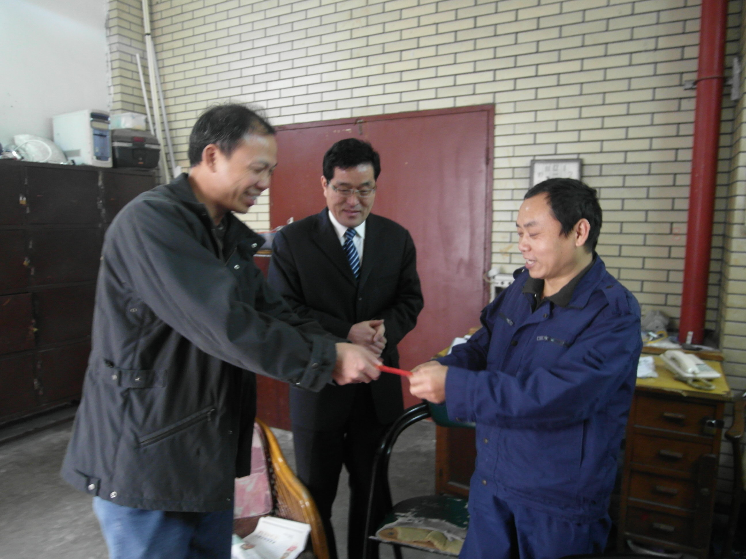 年终致慰问 岁末送温暖 ——后勤集团慰问困难员工 2012年元月12日、13日,后勤集团总经理谢银辉,党总支书记叶鹏飞,副总经理曾国斌、郑庆喜、陈有亮,党总支副书记、部门工会主席刘君彬,总经理助理吴泱分别带队慰问困难员工。 集团领导在送去慰问时,不忘握紧困难员工的双手,道一声问候,道一声感谢,道一声祝福,送去集团对他们的小小帮助,表达集团的点点心意和暖暖关怀。集团领导也代表集团对各位职工致以春节的祝福。 慰问工作早在2011年12月12日就已着手进行,做好发动、报名、审核、补报等细致工作,争取让每一个有困难的员工都收到集团特别的温暖慰问。经统计,此次共有75名困难职工得到集团的慰问。 集团办公室 杨妙萍 2011年元月13日