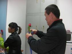 办公室订花、包花忙 “可爱的女同胞,节日快乐!” 人面玫瑰相映红