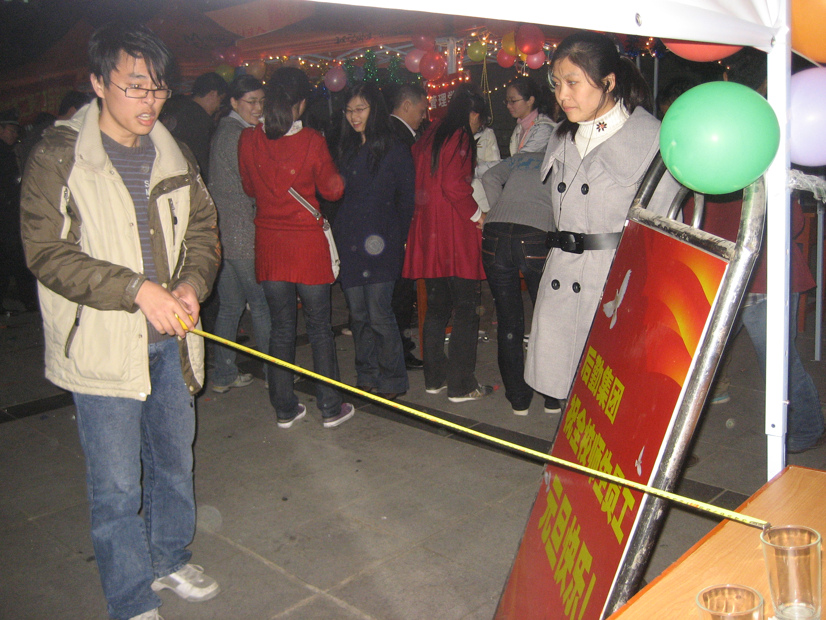 元旦游园会 欢乐满校园 12月30日晚上,我校迎元旦游园活动在嘉庚广场举行,后勤集团荣获最佳人气奖。 “几点开始啊?”“可以先试玩一下吗?”在后勤集团布置的活动点前,师生员工早已排成长队,有的注视着海报,有的询问游戏规则。晚上7点整,游园活动正式开始,刚已“热身”过的师生迫不及待地玩起游戏。 后勤集团为这次活动作了充分准备,设计了三个游戏——好运转转来、柴米油盐醋、乒乓球过卷尺桥。游戏好运转转的奖品是一个煮熟的鸡蛋,“蛋”与“旦”同音,寓意“元旦快乐”。柴米油盐醋即套圈,奖品丰厚,有蜂蜜、酱油、陈醋、甜辣酱、凉拌酱等,这可是后勤集团游园活动上的传统项目,不少去年套中奖品的老师还特意来摊位上大显身手。乒乓球过卷尺桥分三关,分别将卷尺拉开1米、1.5米和2米的长度,乒乓球在卷尺上滚动,30秒内落入杯中即成功。此游戏很受欢迎,游园结束奖品分发完后,还有不少同学想玩,“没有奖品也可以。” 游园活动持续了两个多小时,营造了欢乐和谐的校园新年气氛,丰富了师生员工的文化生活,让他们在紧张忙碌的工作学习之余得到了轻松和愉悦,更在岁末隆冬提前感受到了春天浓浓暖意。饮食服务中心蔡佩玲