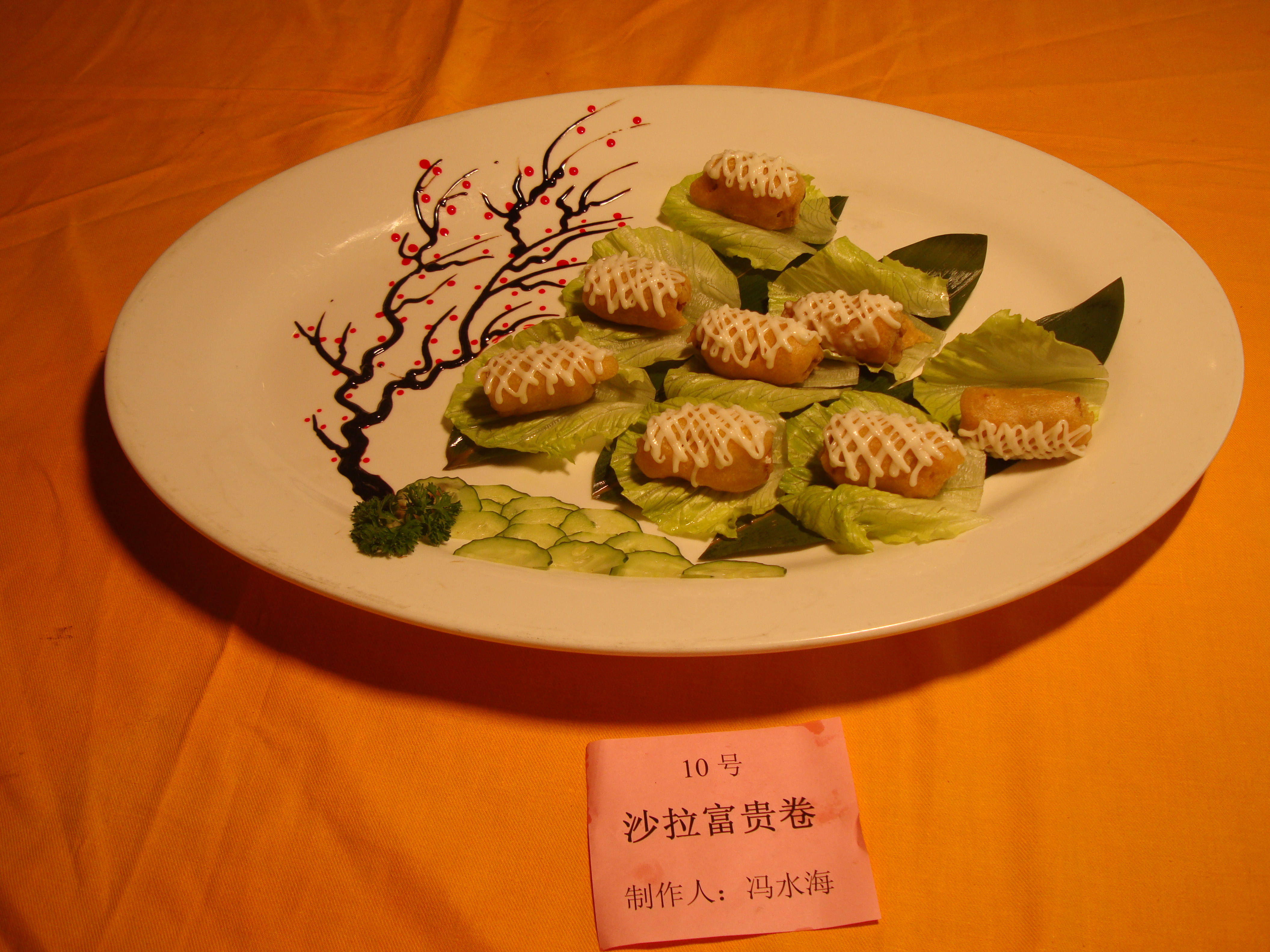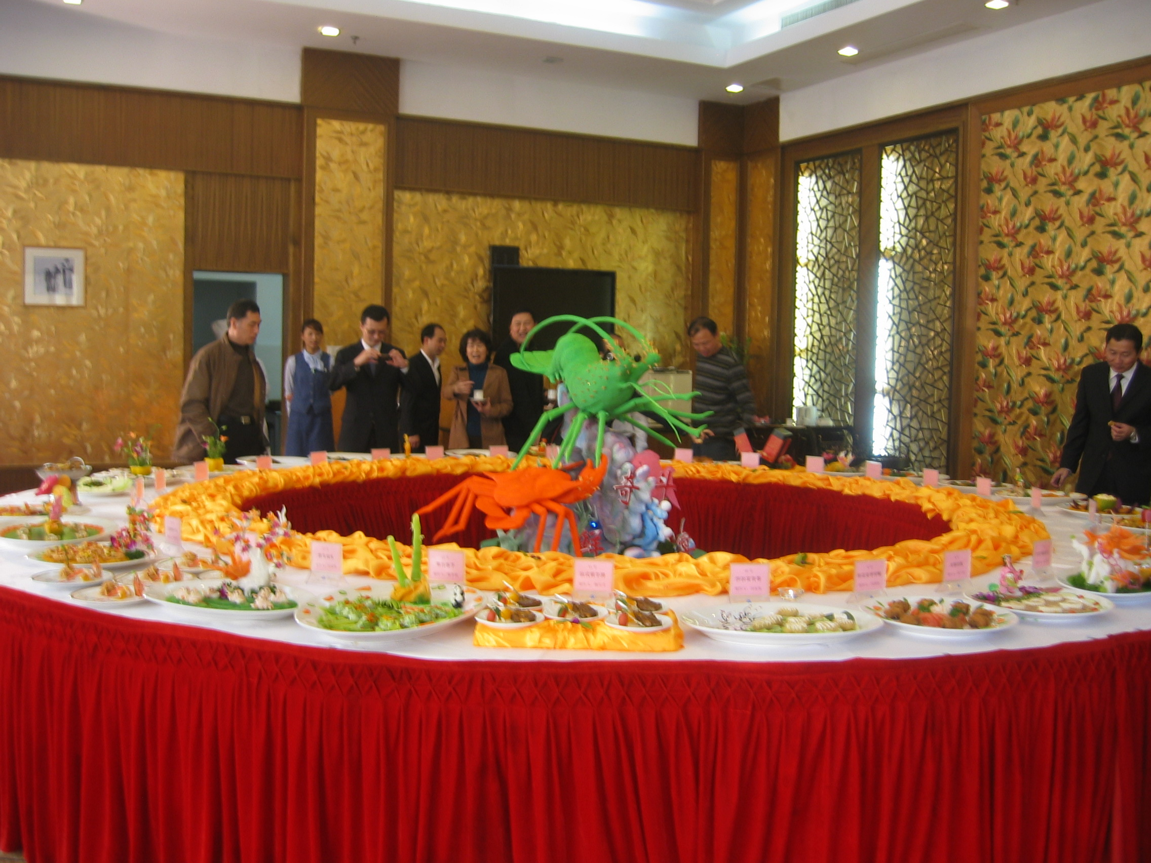 厨艺大比拼 2010年12月21日,以提升后勤服务质量,提高厨师烹饪水平,争创岗位技能标兵为主题的接待服务中心餐饮部厨师技术标兵竞赛在逸夫楼中餐厅举行。 本次比赛共有37 名厨师报名参赛。比赛分为热菜组、面点组、冷盘组和雕刻组四类进行厨艺大比拼。比赛以中低档原料为主,提倡在传统的基础上突出创新,要求“以口味为核心”,在美观、新颖的基础上,讲究餐饮文化气息。 为了使比赛公正、公平,评委由接待中心质培部和餐饮部负责人共同担任,并特别邀请了后勤集团党总支书记叶鹏飞、副总经理陈有亮、副书记庄惠美、办公室主任王裕民以及中心主任、各部门经理前来参评。主要从菜肴的色、香、味、形、器、养、质等方面进行评比,同时兼顾仪容仪表、熟练程度及操作卫生。 厨师技术标兵竞赛的开展,充分展现了接待服务中心餐饮部厨师队伍的综合能力,使大家的烹饪技术得到了交流、学习和促进,增强了全体员工的创新意识和竞争意识,激励了广大员工立足岗位,钻研技术,进一步提高菜肴质量,努力构建一个健康、和谐的饮食环境,为师生员工提供更好更满意的饮食服务。 接待服务中心餐饮部:黄金艳