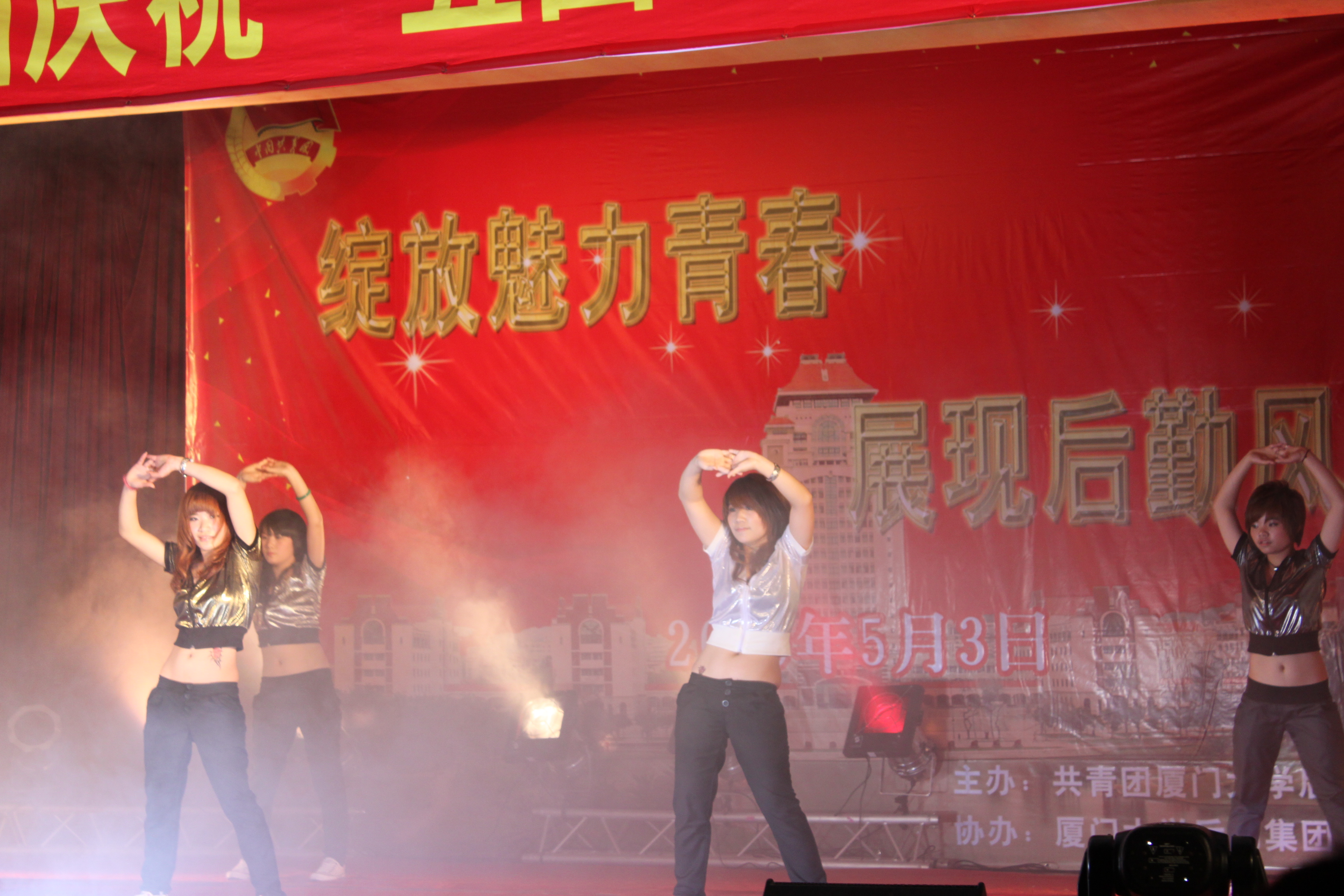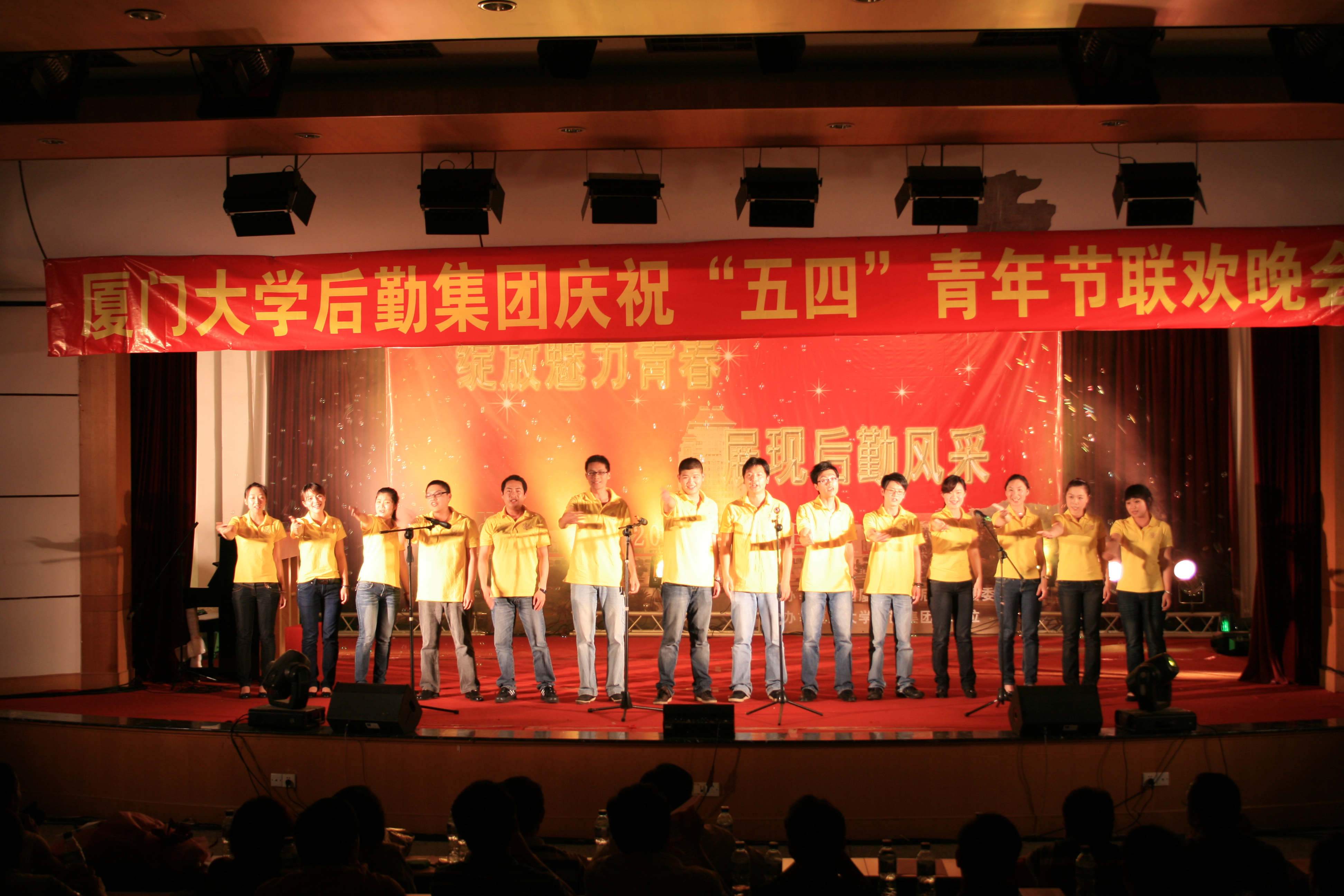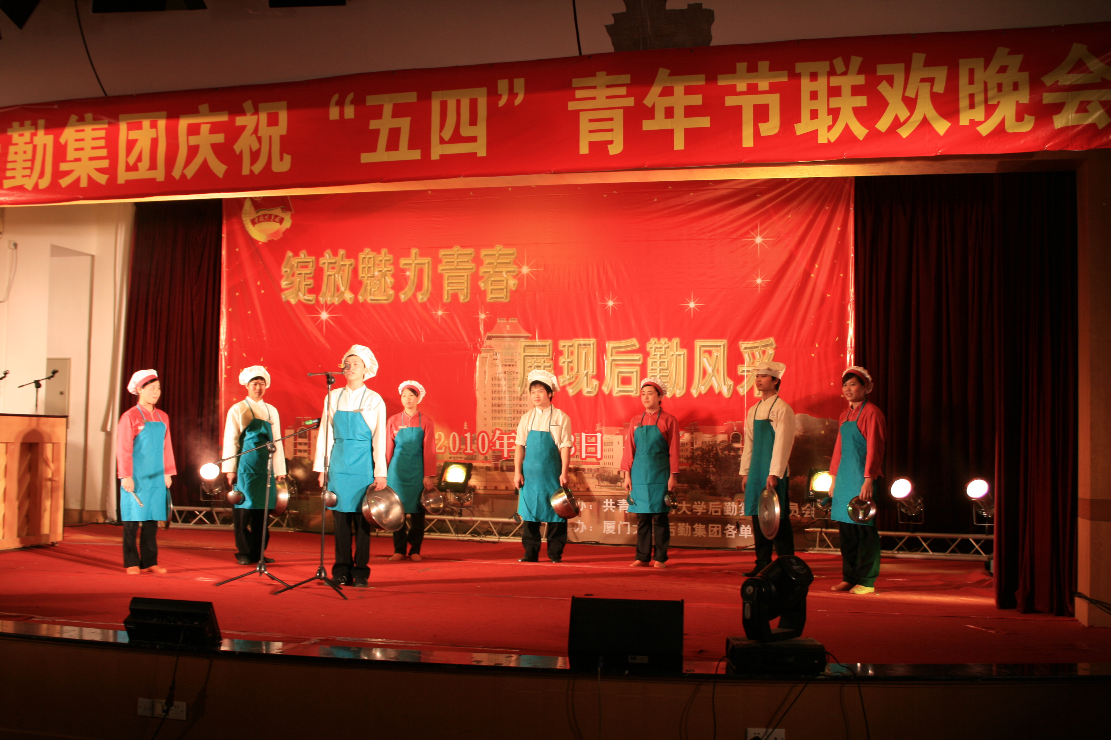 绽放魅力青春 展现后勤风采 ——后勤集团隆重举办庆祝“五四”青年节联欢晚会 5月3日晚,法学院报告厅里激情高涨、欢声雷动。后勤集团青年们载歌载舞,以一个个精彩纷呈的文艺节目,迎接“五四”青年节的到来! 为庆祝“五四”运动91周年和中国共青团建团88周年,在后勤集团团委成立一周年的日子里,后勤集团“五四”青年节联欢晚会于当晚拉开帷幕。校团委副书记陈雪玲,后勤集团总经理谢银辉、党总支副书记庄惠美、副总经理郑庆喜等集团领导班子成员,集团一级岗位、二级岗位管理人员,各党支部书记,集团部门工会、妇委会、团委委员,全体团员,集团员工以及部分师生兴致勃勃地观看了演出。 庄惠美首先代表集团领导班子致辞,对晚会的举办表示热烈祝贺,并对广大团员提出了希望。她指出,后勤集团成立七年多来,形成了一支“特别能吃苦、特别能战斗、特别能奉献”的后勤服务队伍,这当中,广大团员青年充分发挥了生力军和突击队作用,紧紧围绕学校教育事业的大局努力做好各项后勤服务保障工作,取得了令人鼓舞的业绩,赢得了广大师生的肯定。希望广大青年团员再接再厉、与时俱进、锤炼品德、勤奋学习、努力工作、甘于奉献,在今后的工作岗位中再立新功! 在晚会正式开始之前,全体肃立,为4月14日在玉树地震中不幸遇难的同胞们默哀一分钟。 接着,晚会在物业公司的诗朗诵《生命的光芒——致玉树地震》拉开帷幕,诗歌寄托了后勤集团全体员工对玉树地震中受灾群众的同情和鼓励;水电中心卢海滨的歌唱和手语表演《我相信》,表达了后勤人自信自强的坚韧品格;公环中心的安防队列训练,以一系列整齐划一的动作,展现了后勤安防队员的飒爽英姿;由饮食中心餐厅一线员工组织的三句半《餐厅赞歌》,以最朴实的语言,最真挚的感情,抒发了饮食员工爱岗敬业的朴素情怀;漳州校区宾馆的街舞表演《青春飞扬》舞动的是后勤青年朝气蓬勃的精神风貌;饮食合唱团的钢琴伴奏小组唱加伴舞《回娘家》、《美丽的孔雀》以分声部合唱技巧展现后勤员工的艺术天赋;矿泉水公司的肚皮舞表演《kiss》在快速的旋律中舞动激情,掀起全场观众欢呼热潮;物业公司魏城林的独唱《爷爷泡的茶》、陈雪琴的独唱《风含情水含笑》和接待中心董茂盛的独唱《柠檬树》在掌声和鲜花中展示后勤实力派业余歌手的风姿;而物业公司张银坤的太极表演让观众们领略到中国武术的瑰宝;公环中心的《20年后再相会》,以庞大的阵容、强烈的渲染力把整场晚会推向了最高潮! 绽放魅力青春,展现后勤风采。后勤集团青年们在“五四”晚会中尽情展现自我风采,深情抒发真切情怀!通过本次晚会的举办,增强了广大后勤青年的凝聚力和向心力,大家纷纷表示要在今后的后勤服务保障工作中,继续秉承“五四”精神,以更加昂扬的斗志,更加豪迈的气魄、更加务实的作风、更加扎实的工作,用自己勤劳的双手、火热的青春和澎湃的激情为学校和集团的明天再续时代绚丽的篇章! 后勤集团团委:林 琳 2010年5月4日