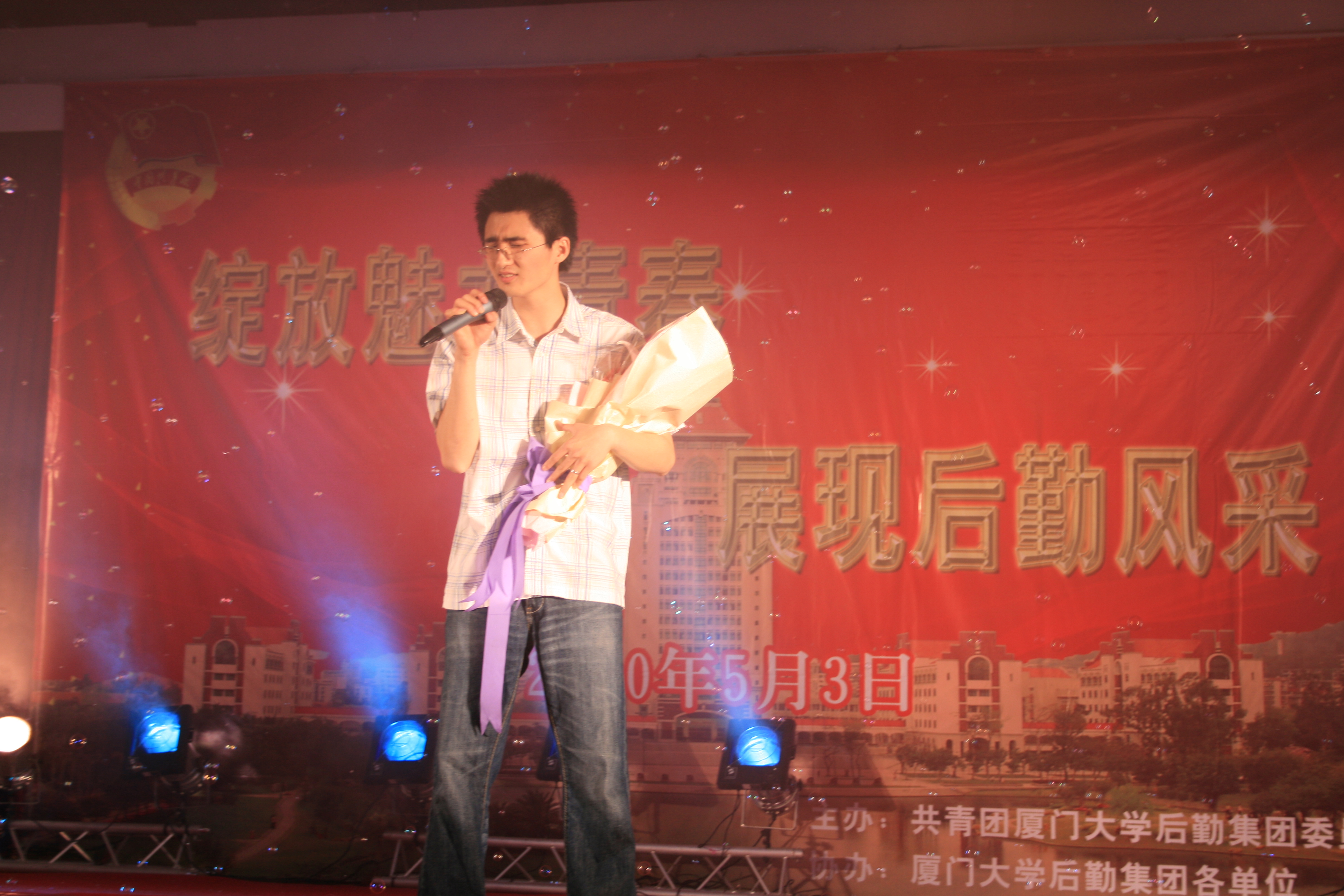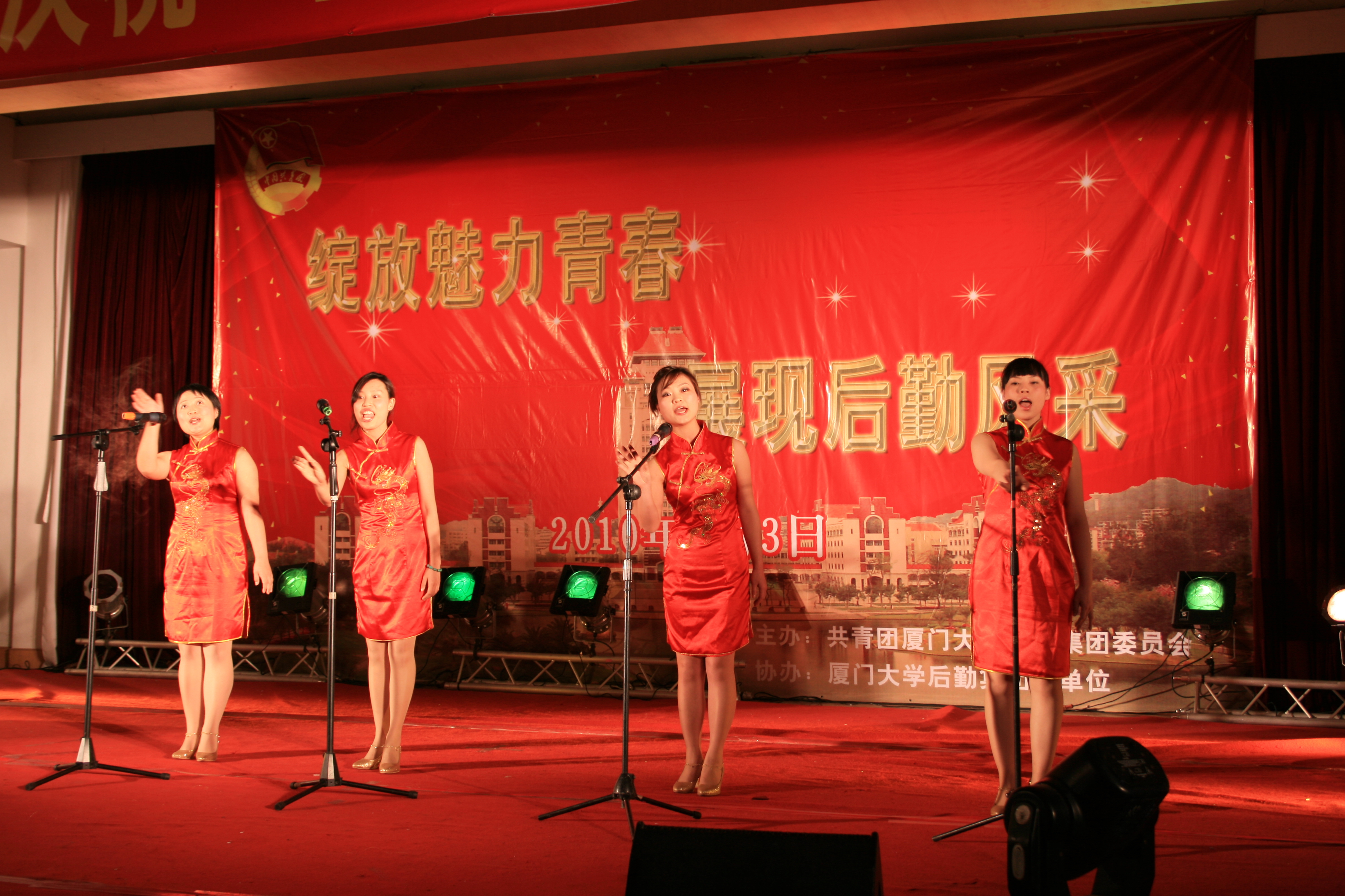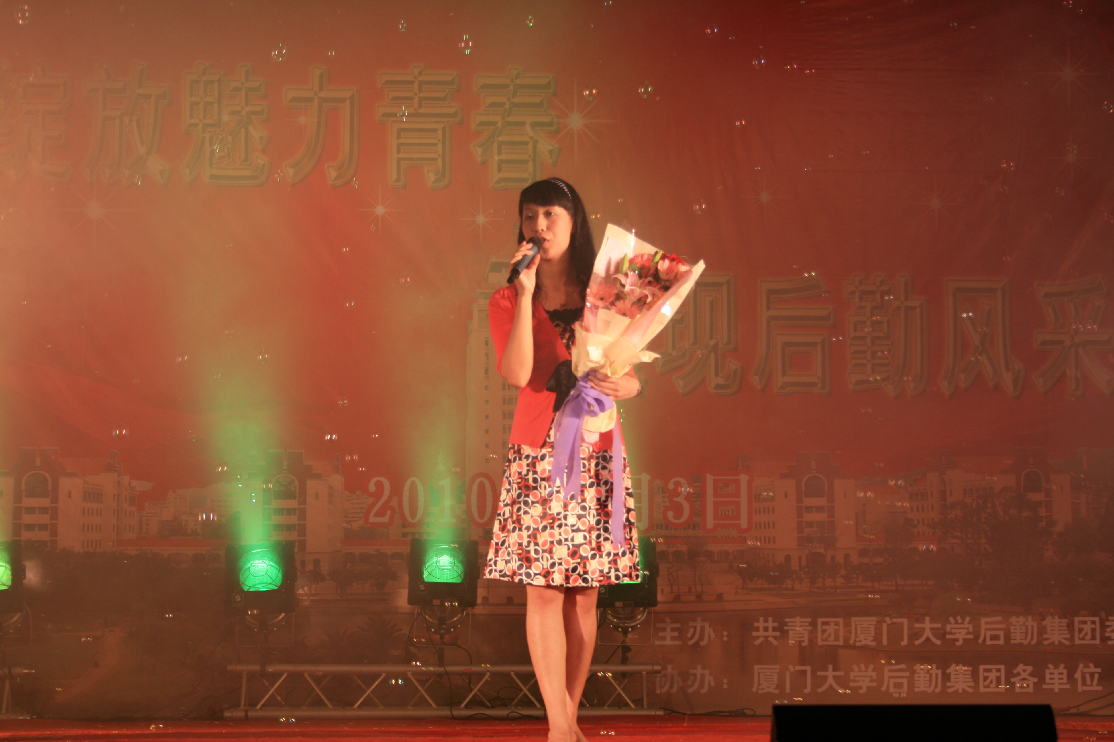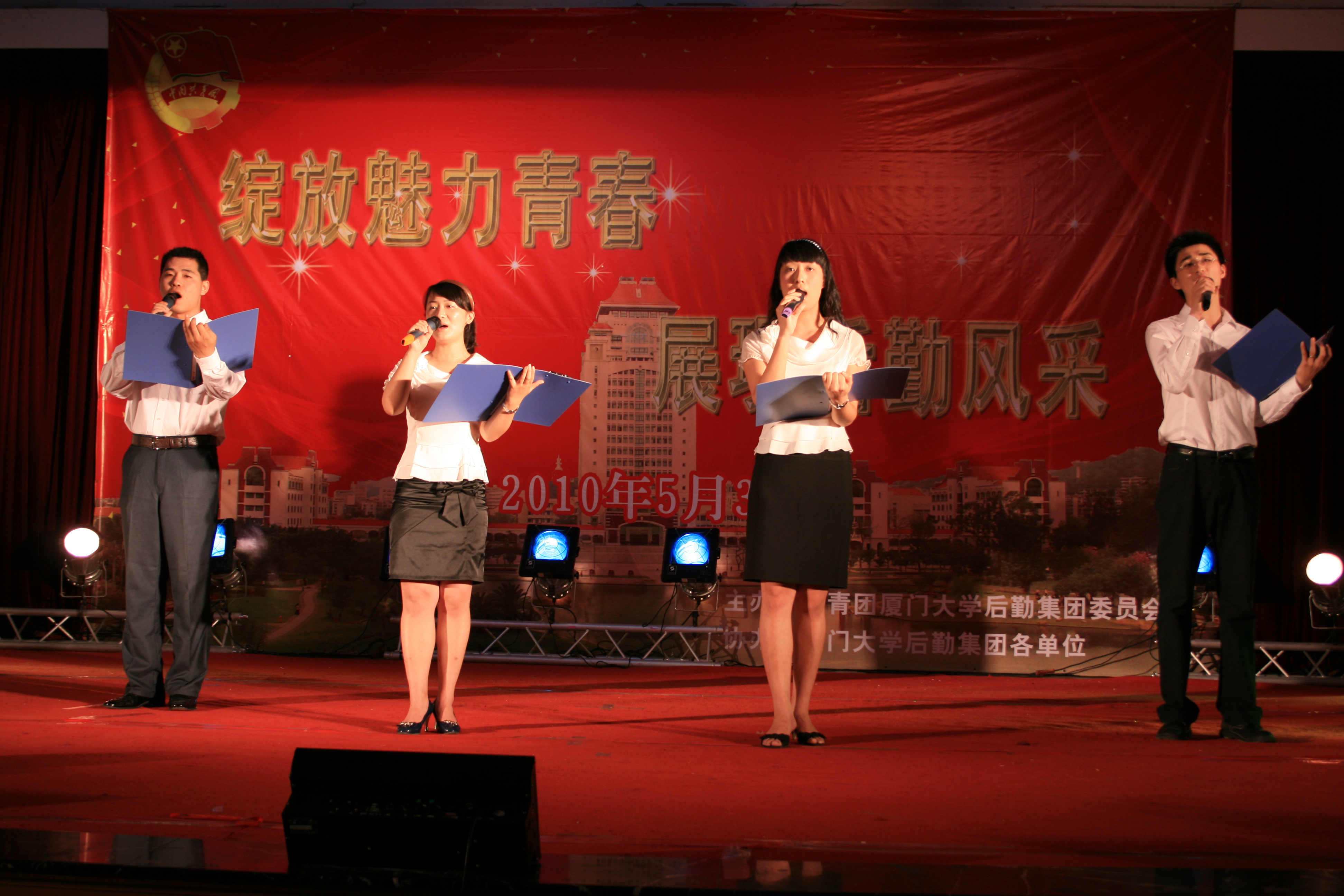 绽放魅力青春 展现后勤风采 ——后勤集团隆重举办庆祝“五四”青年节联欢晚会 5月3日晚,法学院报告厅里激情高涨、欢声雷动。后勤集团青年们载歌载舞,以一个个精彩纷呈的文艺节目,迎接“五四”青年节的到来! 为庆祝“五四”运动91周年和中国共青团建团88周年,在后勤集团团委成立一周年的日子里,后勤集团“五四”青年节联欢晚会于当晚拉开帷幕。校团委副书记陈雪玲,后勤集团总经理谢银辉、党总支副书记庄惠美、副总经理郑庆喜等集团领导班子成员,集团一级岗位、二级岗位管理人员,各党支部书记,集团部门工会、妇委会、团委委员,全体团员,集团员工以及部分师生兴致勃勃地观看了演出。 庄惠美首先代表集团领导班子致辞,对晚会的举办表示热烈祝贺,并对广大团员提出了希望。她指出,后勤集团成立七年多来,形成了一支“特别能吃苦、特别能战斗、特别能奉献”的后勤服务队伍,这当中,广大团员青年充分发挥了生力军和突击队作用,紧紧围绕学校教育事业的大局努力做好各项后勤服务保障工作,取得了令人鼓舞的业绩,赢得了广大师生的肯定。希望广大青年团员再接再厉、与时俱进、锤炼品德、勤奋学习、努力工作、甘于奉献,在今后的工作岗位中再立新功! 在晚会正式开始之前,全体肃立,为4月14日在玉树地震中不幸遇难的同胞们默哀一分钟。 接着,晚会在物业公司的诗朗诵《生命的光芒——致玉树地震》拉开帷幕,诗歌寄托了后勤集团全体员工对玉树地震中受灾群众的同情和鼓励;水电中心卢海滨的歌唱和手语表演《我相信》,表达了后勤人自信自强的坚韧品格;公环中心的安防队列训练,以一系列整齐划一的动作,展现了后勤安防队员的飒爽英姿;由饮食中心餐厅一线员工组织的三句半《餐厅赞歌》,以最朴实的语言,最真挚的感情,抒发了饮食员工爱岗敬业的朴素情怀;漳州校区宾馆的街舞表演《青春飞扬》舞动的是后勤青年朝气蓬勃的精神风貌;饮食合唱团的钢琴伴奏小组唱加伴舞《回娘家》、《美丽的孔雀》以分声部合唱技巧展现后勤员工的艺术天赋;矿泉水公司的肚皮舞表演《kiss》在快速的旋律中舞动激情,掀起全场观众欢呼热潮;物业公司魏城林的独唱《爷爷泡的茶》、陈雪琴的独唱《风含情水含笑》和接待中心董茂盛的独唱《柠檬树》在掌声和鲜花中展示后勤实力派业余歌手的风姿;而物业公司张银坤的太极表演让观众们领略到中国武术的瑰宝;公环中心的《20年后再相会》,以庞大的阵容、强烈的渲染力把整场晚会推向了最高潮! 绽放魅力青春,展现后勤风采。后勤集团青年们在“五四”晚会中尽情展现自我风采,深情抒发真切情怀!通过本次晚会的举办,增强了广大后勤青年的凝聚力和向心力,大家纷纷表示要在今后的后勤服务保障工作中,继续秉承“五四”精神,以更加昂扬的斗志,更加豪迈的气魄、更加务实的作风、更加扎实的工作,用自己勤劳的双手、火热的青春和澎湃的激情为学校和集团的明天再续时代绚丽的篇章! 后勤集团团委:林 琳 2010年5月4日