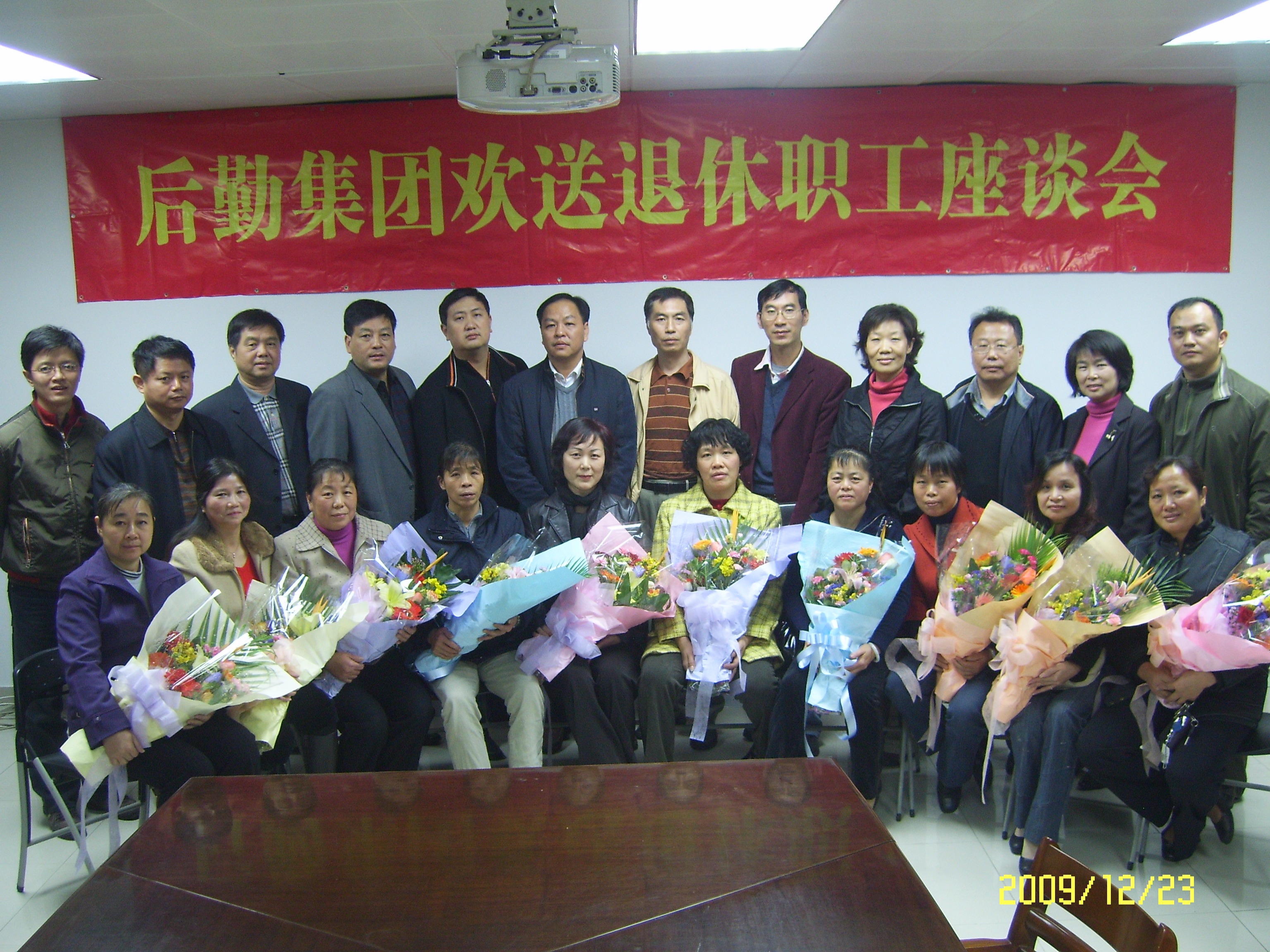 后勤集团举行2009年下半年退休职工欢送会 12月23日下午,后勤集团在会议室举行2009年下半年退休职工欢送会。本次欢送会邀请了何秀莲、曾秀治、余丽英、陈玉英、邱一玲、蔡秀卿、黄延月、林秀慧、曾慧卿、王阿玉等10位于今年下半年退休的职工参加。后勤集团总经理谢银辉,党总支书记叶鹏飞,副总经理曾国斌、郑庆喜,党总支副书记庄惠美,总经理助理、部门工会主席刘君彬,总经理助理、漳州校区服务办主任吴泱以及相关部门负责人,工、青、妇负责人出席了欢送会。会议由刘君彬主持。 会上,谢银辉总经理代表集团向在学校后勤岗位上贡献了几十年的退休职工们表达了衷心的感谢和美好的祝愿,希望他们能常回“家”看看,继续关心和支持集团的发展。接着,与会领导纷纷致辞,感谢退休职工们为集团所做的贡献,并祝福他们退休生活幸福美满;退休职工们踊跃发言,感谢集团领导和同事们的长期关心和帮助,深情回忆往昔峥嵘岁月,共同畅想未来美好生活。整个欢送会愉悦而热烈! 随后,与会领导向退休职工们献上鲜花,并合影留念。 (集团办公室:林琳)