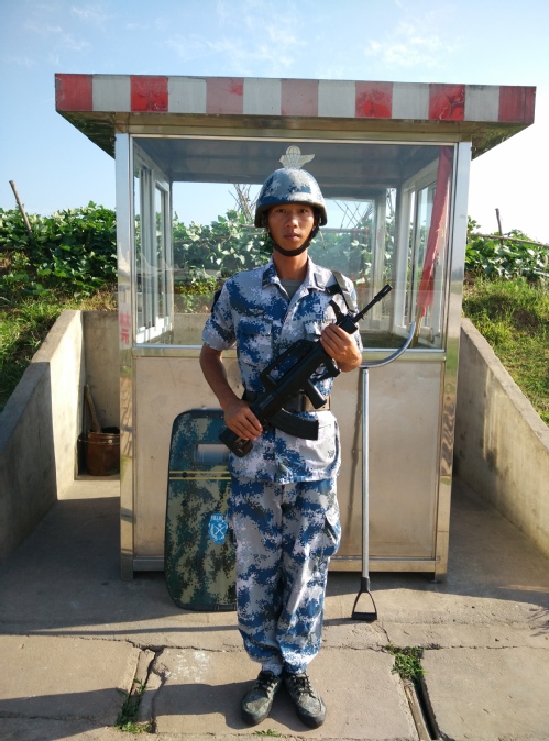 刘亲城当兵时执勤时的严整军姿。
