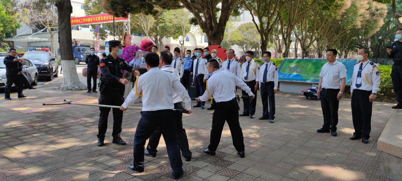 为提升校园安防整体形象,中心对大南、群贤、白城、东区校门的值班室与海韵学生公寓大门值班室进行粉刷,并定制更新了校门值班室及芙蓉1、2、3、4学生宿舍安防值班岗亭的办公桌椅。同时在岗前一课中加强安防服务礼仪和服务行为规范培训,确保以最佳的精神面貌和工作状态迎接百年校庆;联合保卫处、大学路派出所、公安局思明分局进行防暴处突应急演练,提升校庆期间的安全保障能力。