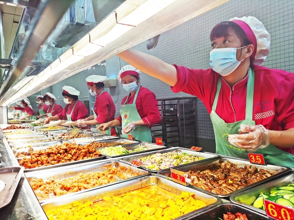 为迎接学生返校,饮食服务中心在持续做好疫情防控常态化工作的同时,组织二级岗及以上人员、骨干员工参加“开学前学校食堂食品安全和疫情防控培训”,请思明区中华市场监督管理所的人员前来授课,确保食品安全规范管理。食堂在开业前,充分打扫清洁卫生,做好环境消毒清洁工作,做到窗明几净,为师生营造安心的用餐环境。