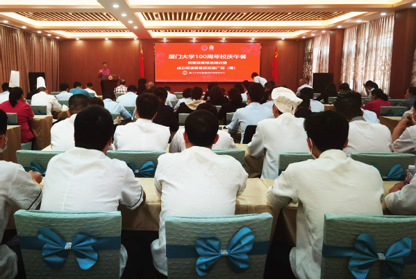 时序更替,华章日新。在所有厦大人的共同期盼中,厦门大学的百年华诞即将到来。为进一步做好校庆供餐工作,确保校友返校用餐圆满顺利,饮食服务中心召开厦门大学100周年校庆午餐供餐菜肴标准暨成立标准菜肴研发推广部(筹)会议,集团副总经理陈有亮,饮食服务中心主任、副主任,三个校区餐厅经理,行政总厨,现场管理,厨师长,菜间组长参加会议。会议由饮食服务中心主任江森民主持。