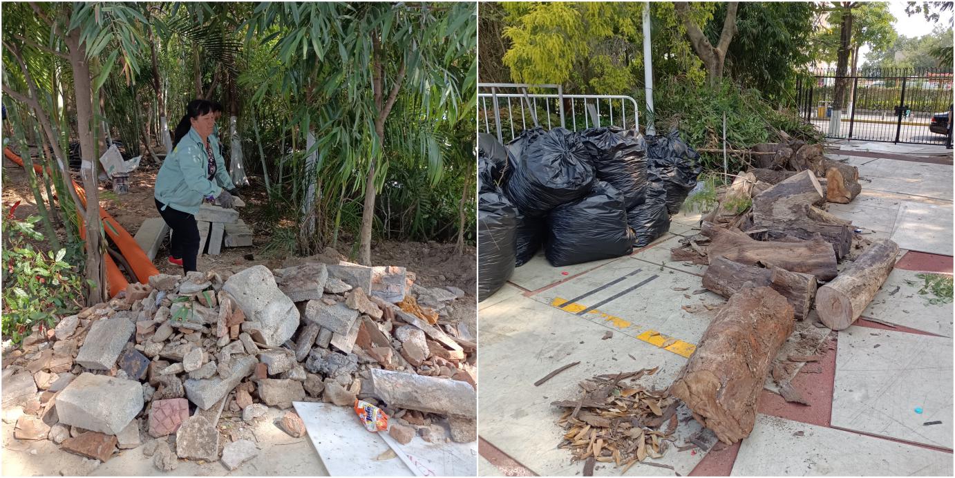 绿化保洁部员工也连续多天加班加点清理上弦场周边绿化带的枯枝败叶、土头垃圾、白色垃圾等,保障了周边环境的干净、整洁。