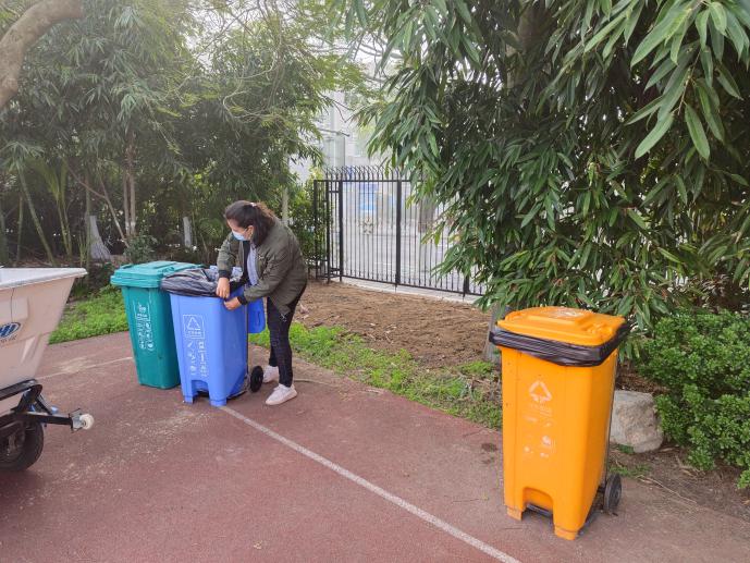 中心公共教学部场馆员工精心细致、一丝不苟做好场地卫生整治、杂草清理、防疫消杀等保障工作。此外,为方便舞台施工方和排练节目的师生进行厨余垃圾分类,在现场还增设了厨余垃圾分类桶。