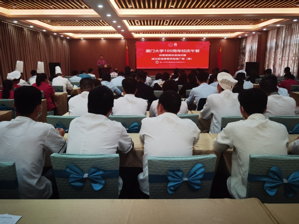 以百年校庆供餐为契机,饮食服务中心根据校庆午餐供餐菜肴标准,结合厦门大学后勤“5D”现场管理体系,对标一流标准努力提升服务水平。各食堂积极行动,开展一系列技能培训,力求在校庆当天呈现出厦大餐饮高标准、高水平、高质量的金牌服务。