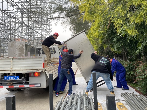 3月5日,中心副主任李春海带领工程维修部副经理苏青炎、翔安校区水电管理部副经理郑文炉现场跟进上弦场主舞台临时箱变布设工作,与舞台搭建方现场协调,因地制宜对临时箱变的转移、布设方案随机应变、灵活调整。