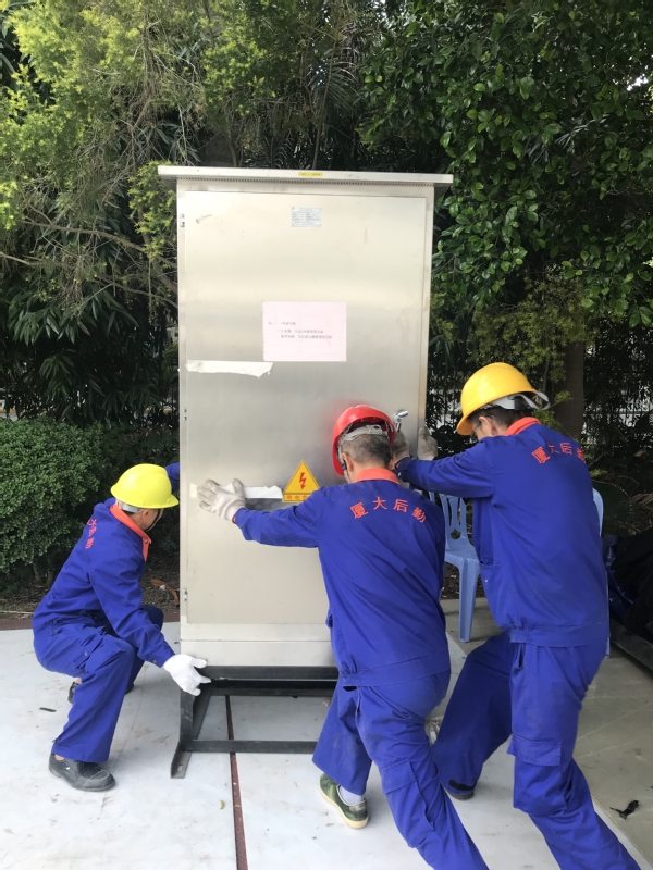3月4、5日,鹭岛阴雨绵绵,厦园内各处“百年校庆”筹备工作正紧而有序开展,为了保障上弦场“百年校庆”晚会筹备工作及时稳步推进,水电服务中心维修师傅们冒雨布设临时电力设备,为晚会主会场供电做前期准备工作。