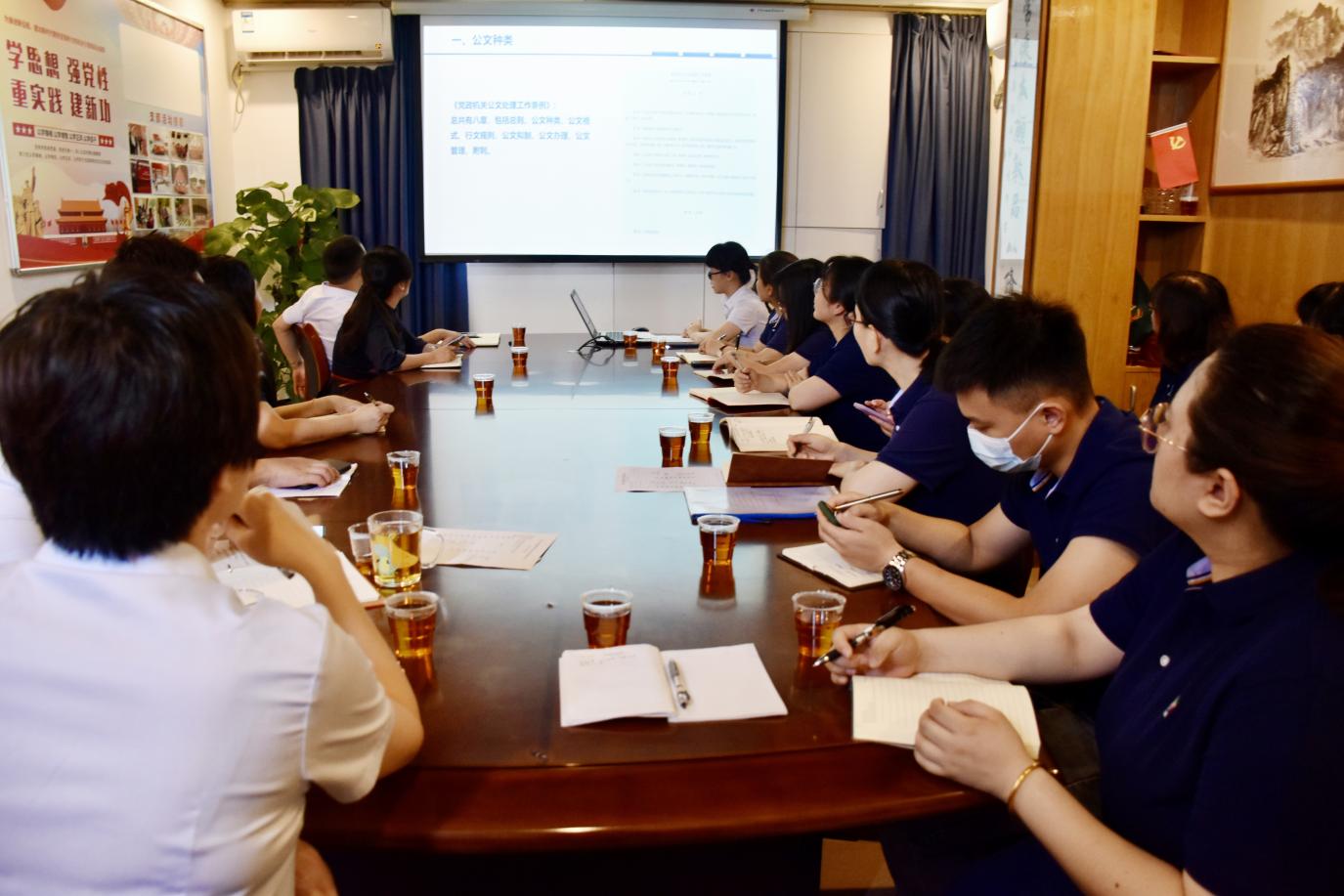 为强化公文责任意识,提高公文处理质效,充分发挥公文服务领导决策和中心工作的作用,5月10日上午,公寓党支部与物业党支部组织党员、骨干在公环中心会议室开展公文写作提升培训。
