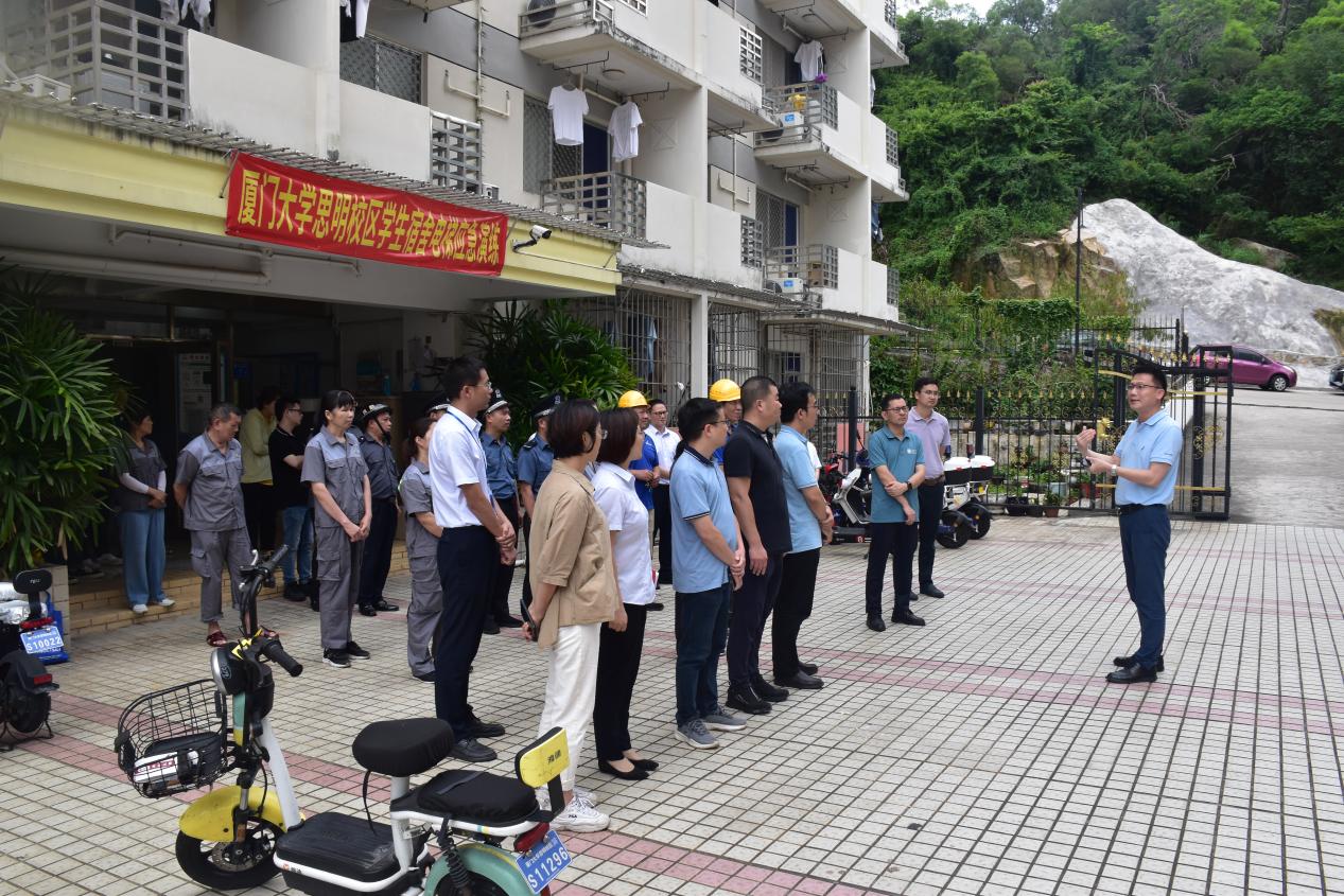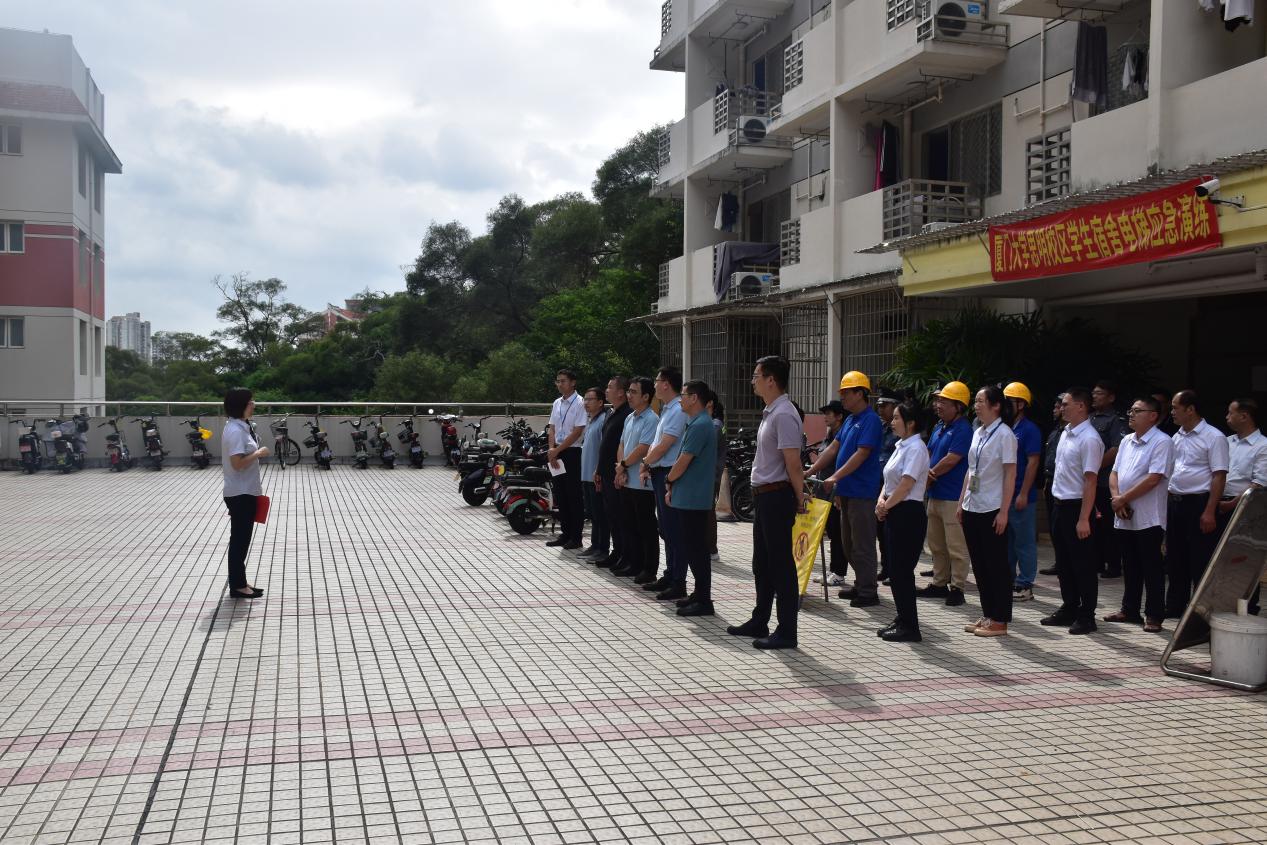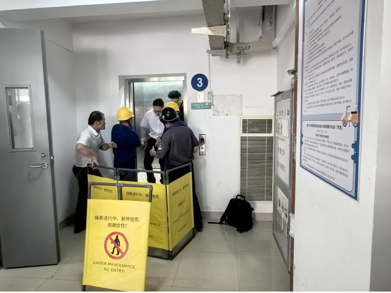 为贯彻习近平总书记关于防灾减灾重要论述精神,落实学校和集团关于防灾减灾宣传工作部署,增强员工电梯突发故障应急处置能力,5月28日下午,学生公寓与环境服务中心联合学生公寓学生工作办公室、资产处水电气管理科、电梯维保公司开展了思明校区学生宿舍电梯应急演练。学生工作处副处长、学生公寓学生工作办公室主任陈泗林,后勤集团副总经理李启忠,资产处水电气管理科科长徐伟斌,学生公寓与环境服务中心主任谢伟锋到场指导。演练由学生公寓与环境服务中心副主任叶晓真主持。