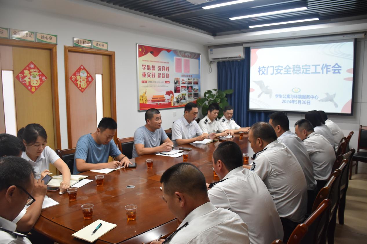 5月30日下午,学生公寓与环境服务中心召开校门安全稳定工作会,中心主任谢伟锋、本部与海韵学生公寓校门安防管理骨干参加会议。