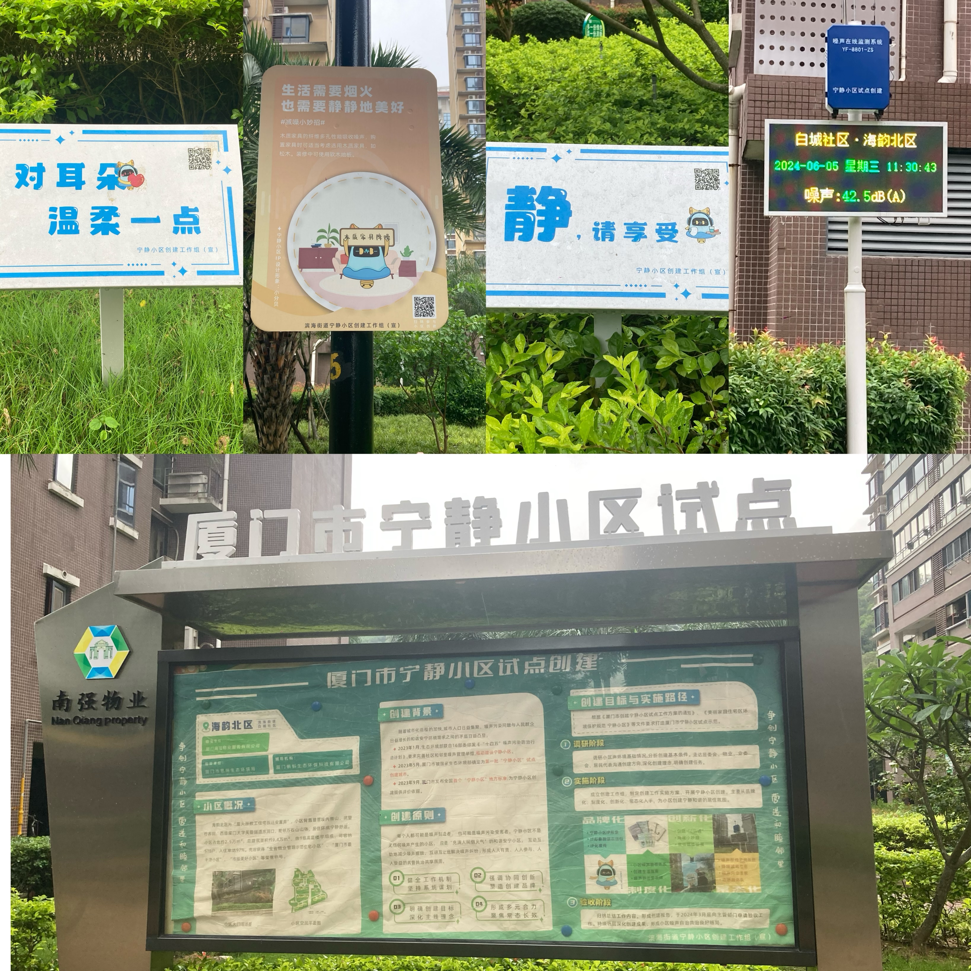 2023年5月,厦门被生态环境部确定为第一批“宁静小区”试点创建城市。海韵北区积极响应,迅速行动,于同年8月成立了“宁静小区”试点示范创建工作组,期间厦门市宁静小区创建评价标准专家组携滨海街道、白城居委会对海韵北区进行现场调研、考察。经过近一年的不懈努力,通过品牌化、制度化、创新化、常态化的持续打造,海韵北区成功地为居民们创造了一个宁静和谐的居住环境。