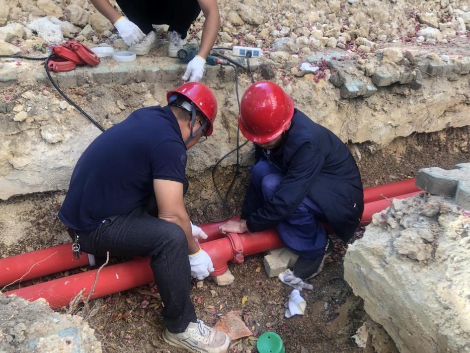 2019年5月以来,漳州校区水电维修部多次接到报修,校区理工大楼、南区食堂、北区综合楼等多处楼栋出现消防管网渗漏,水电师傅在开挖管道维修过程中发现,消防管道腐蚀严重、渗漏点较多,水电维修部根据实际情况向甲方建议并取得消防管改造的施工工作。经理李德兴组织水电师傅,加班加点制定科学严密的施工方案,施工中从管道的滚槽、走向、标高、固定、上漆等各方面精细施工,精益求精的改造工程赢得了学校领导和师生的肯定和好评,也较好解决了校区消防管道大范围漏水、水压不足等消防安全问题。