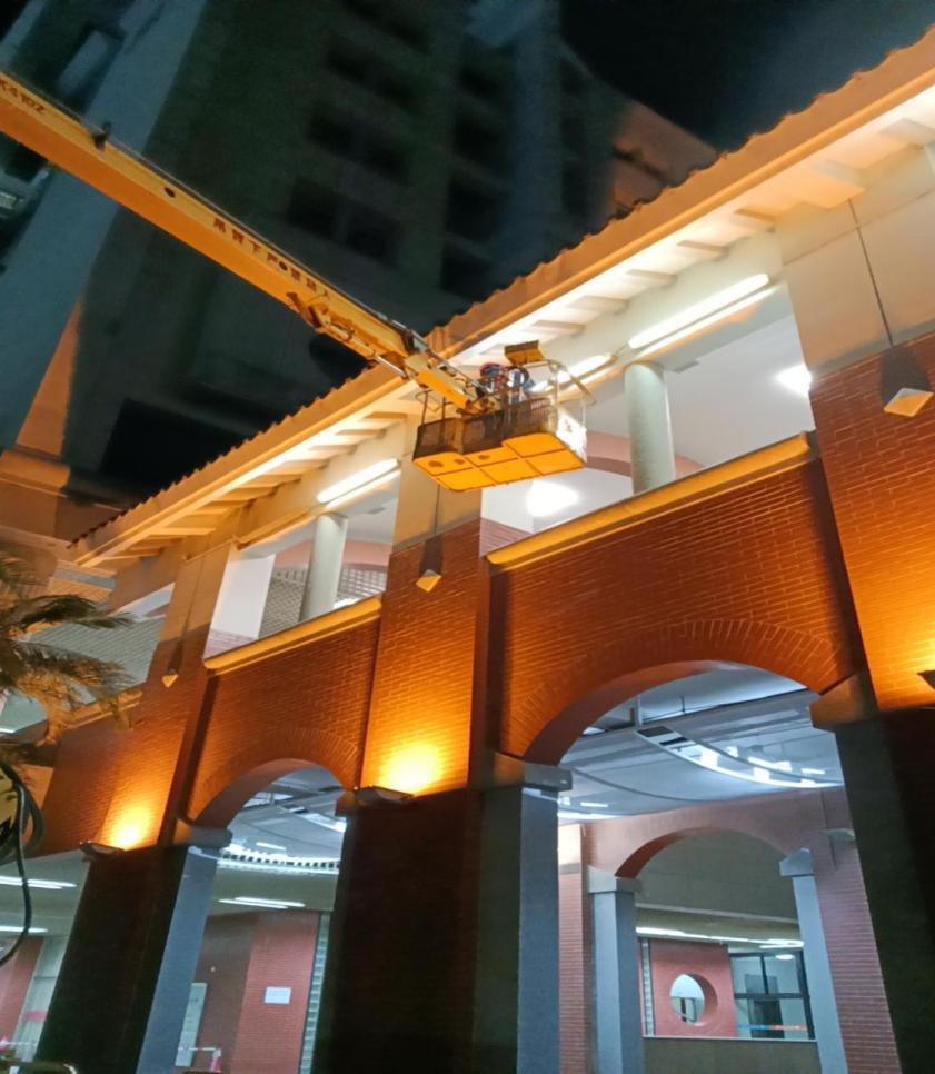 (为迎接嘉庚学院20周年庆,水电师傅加班加点修缮夜景灯)